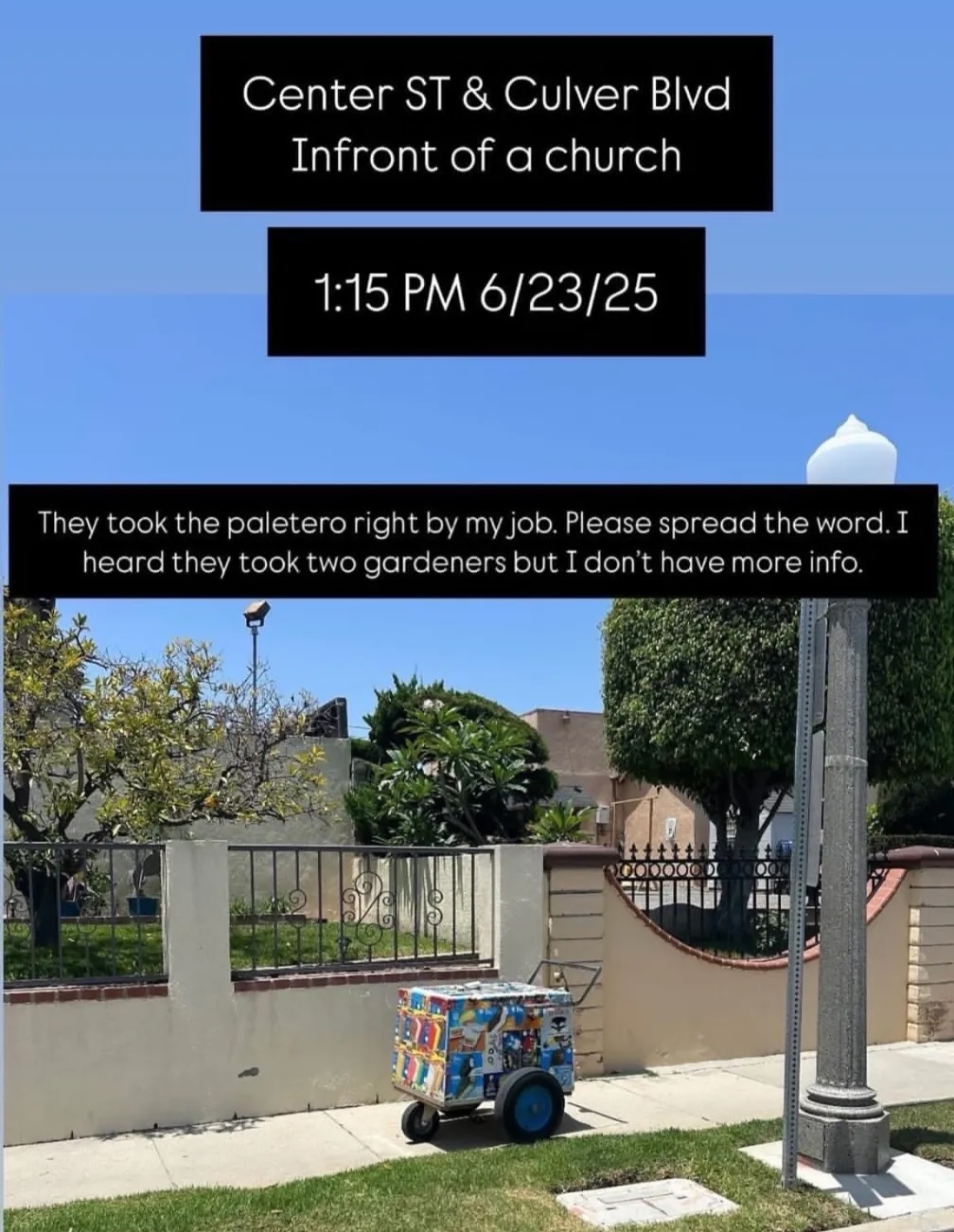 El lunes pasado, un querido vendedor de paletas fue detenido frente a una iglesia en Culver City, dejando atrás únicamente su carrito.