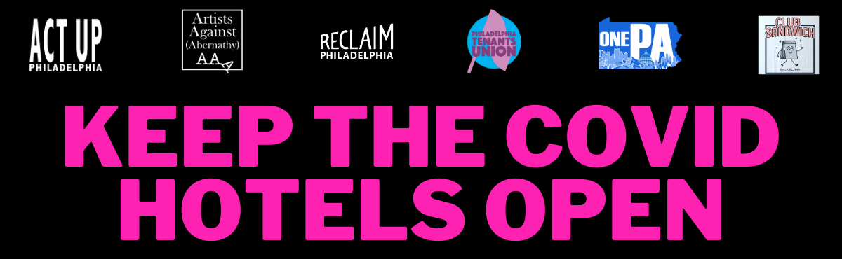 We are demanding that OHS NOT close the COVID hotel sites and that they allow residents to remain where they are. Right now the city’s priority must be to keep its residents safe, and that means keeping the hotel site open. We need as many voices as possible to demand action from Mayor Kenney and Managing Director Tumar Alexander - join us and take action by sending a letter!