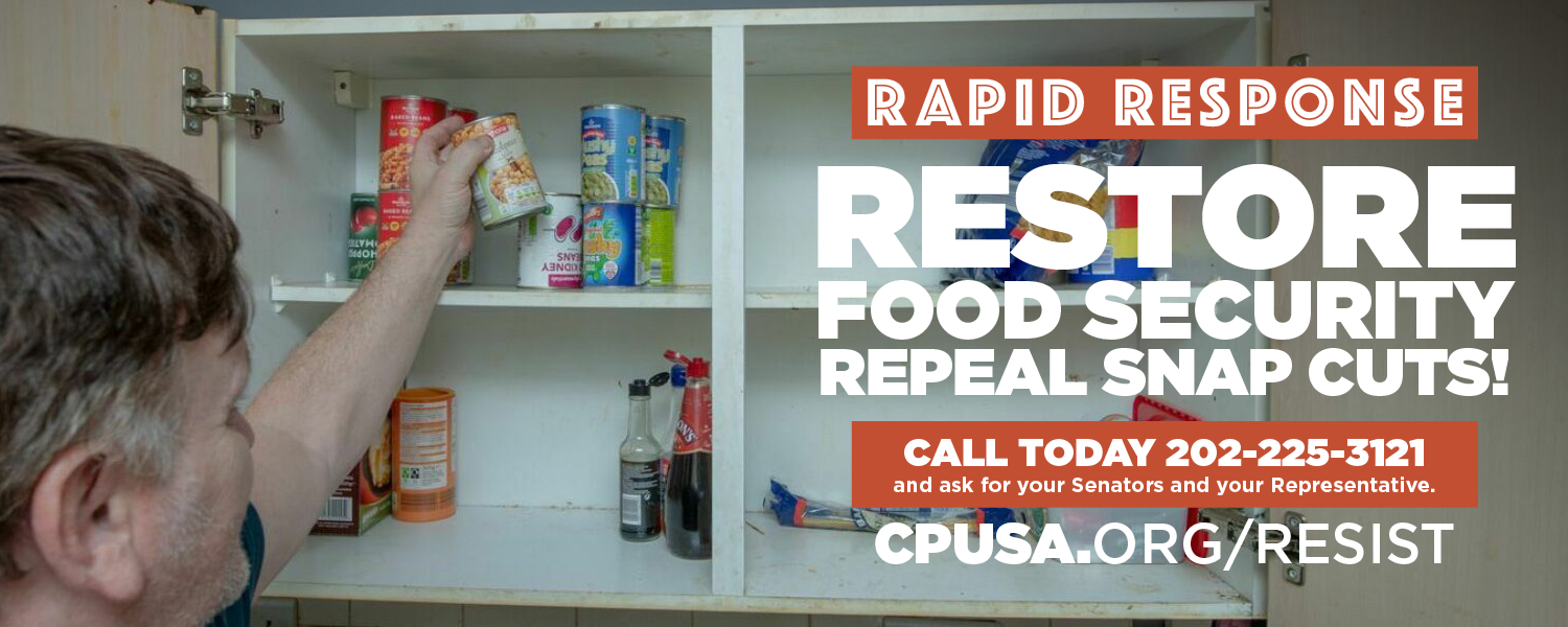Repeal the devastating $187 billion cuts to SNAP in the “big bad” budget. These SNAP cuts are life threatening for 16 million children and millions of seniors, low wage workers, and veterans, as well as farmers, ranchers, and local economies.