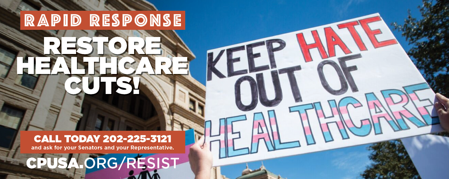 Reject any funding deal that doesn't restore Medicare and Medicaid, extend the ACA tax credits, and stop the denial of the LGBTQ community’s special healthcare needs. Support Medicare for All (H.R.3069 / S.1506).