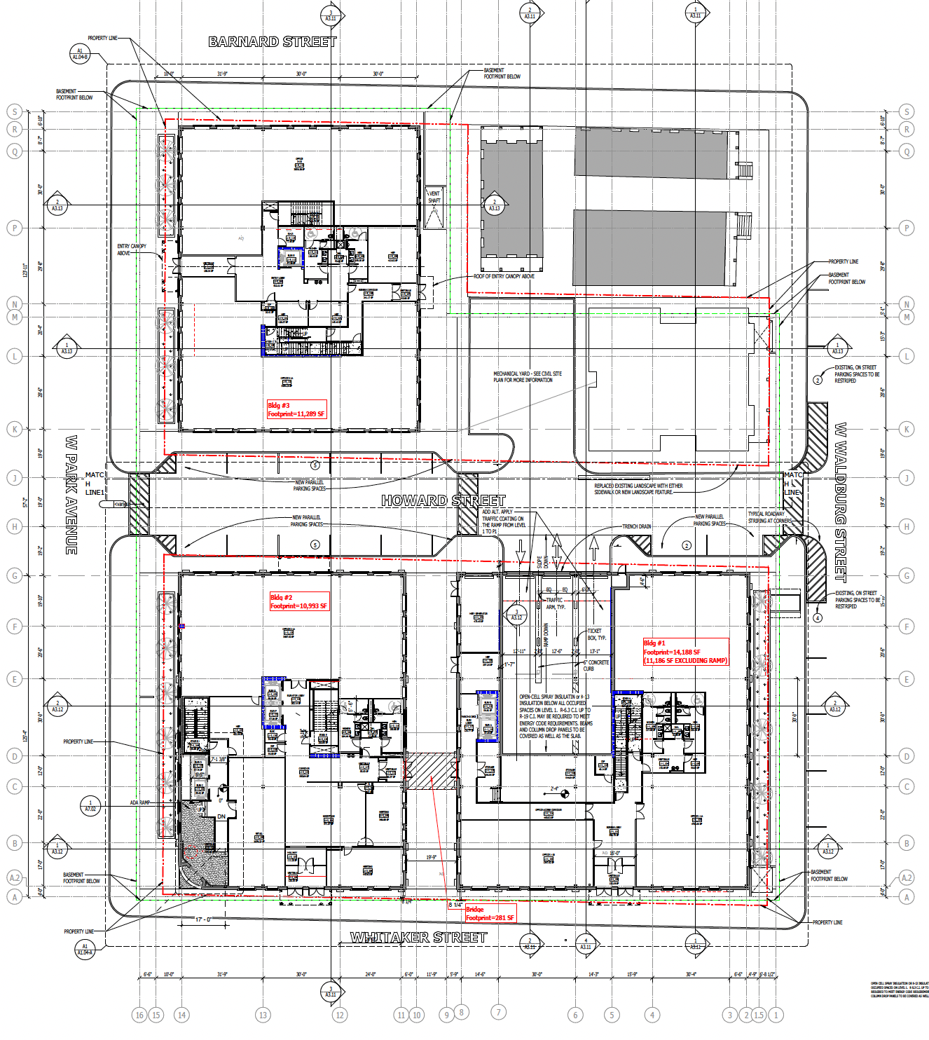 (Attached Drawings and Links are from the Developer's August 2025, 25-08481-BC and 25-004171-PLAN submissions found in the Public Records on ETRAC. Search for Forsyth Park Garage)