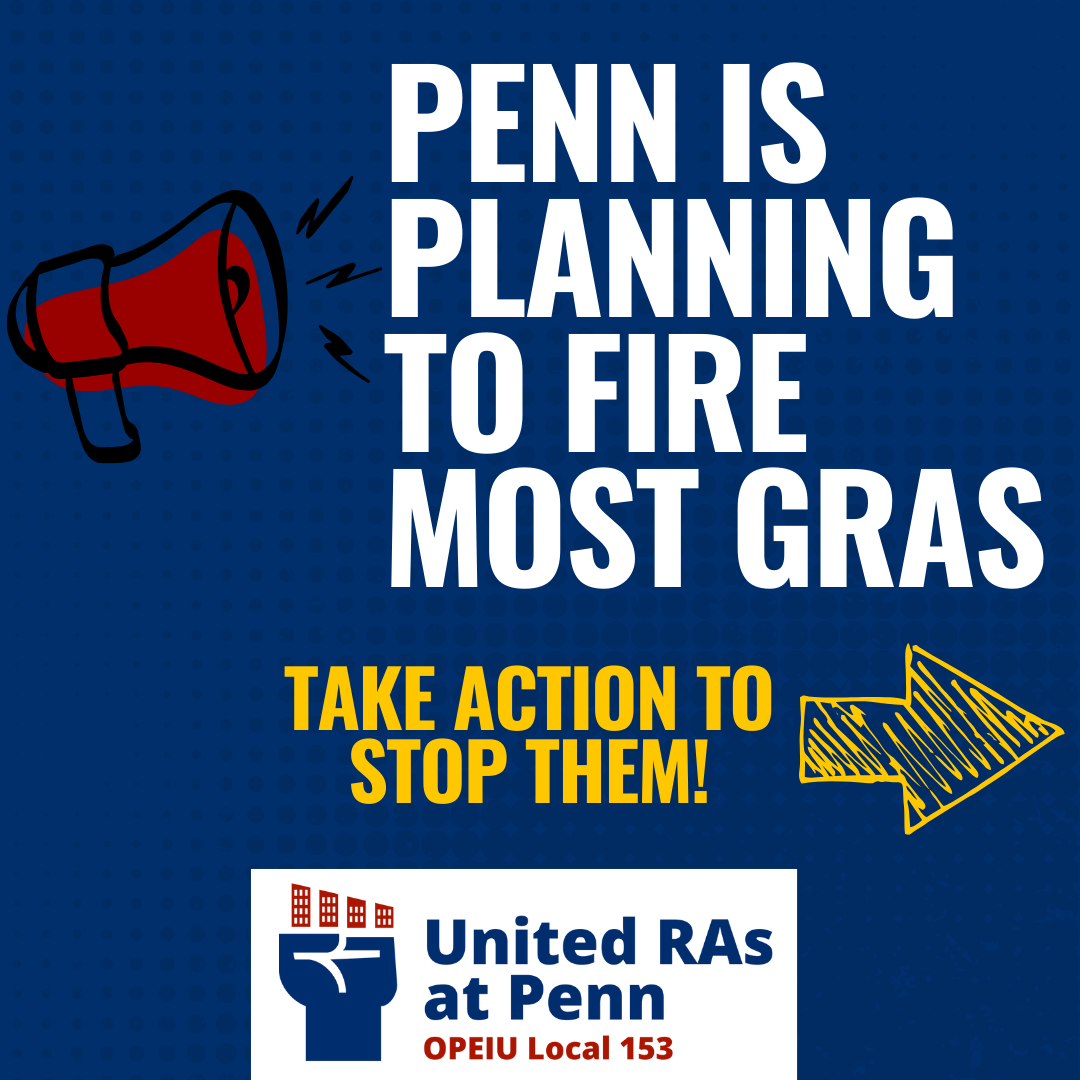 Through indirect sources (an email between our member and Vice Provost for Graduate Education Kelly Jordan-Sciutto), our union has learned that Graduate Student Resident Advisors who also perform research or instructional services may be forced out of their position by Penn. This illegal, unilateral action by Penn seeks to leave dozens of graduate workers without stable housing and significantly undermine their ability to make ends meet, while terminating the important contributions grad RAs make to their college houses. We have asked Penn HR to verify whether this is happening, with no answer for more than a week.