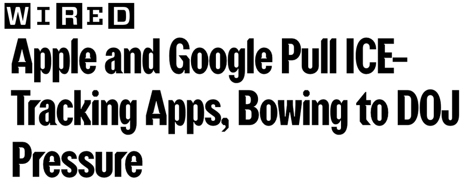 - Wired: "Apple and Google Pull ICE-Tracking Apps, Bowing to DOJ Pressure"