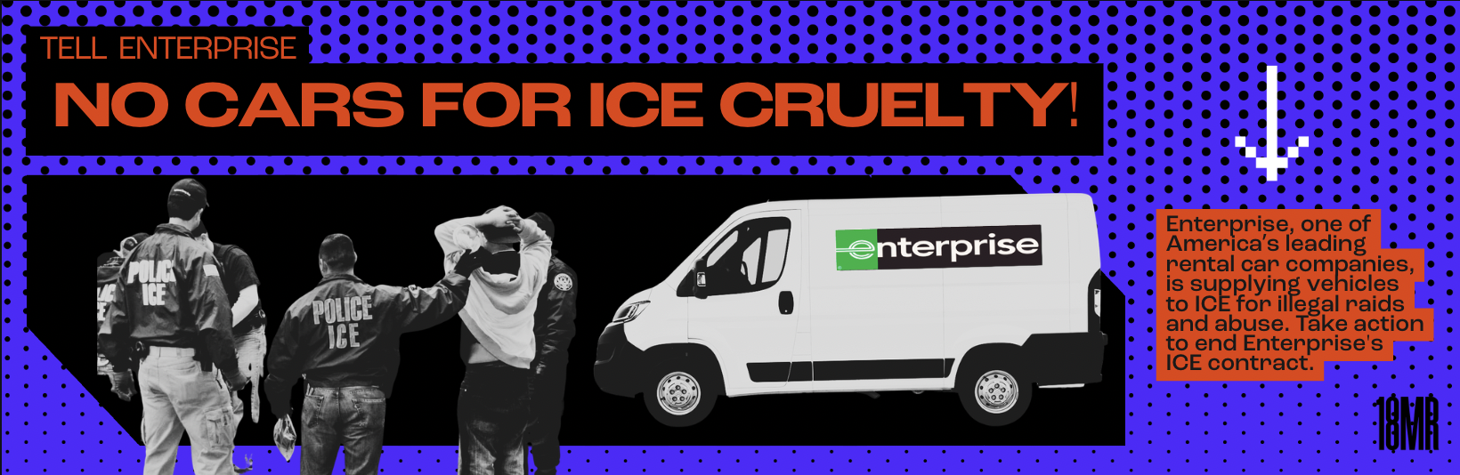 Make no mistake: ICE cannot continue to terrorize our communities without the logistical, financial, and political support of businesses like Enterprise. These contracts are unjust and predatory, and we cannot allow corporations to fuel the detention and deportation machine that is illegally targeting our neighbors.
