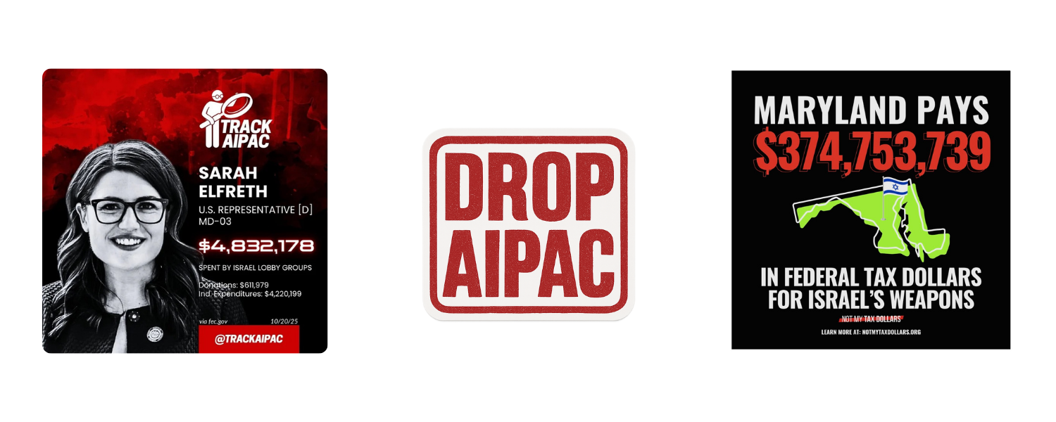 As constituents of Maryland’s 3rd Congressional District, we demand that Rep. Elfreth stop taking AIPAC money, reject all support from AIPAC-aligned PACs and super PACs, and fight to end U.S. military funding that enables genocide. Use this form to add your name and send a personalized message directly to her office.