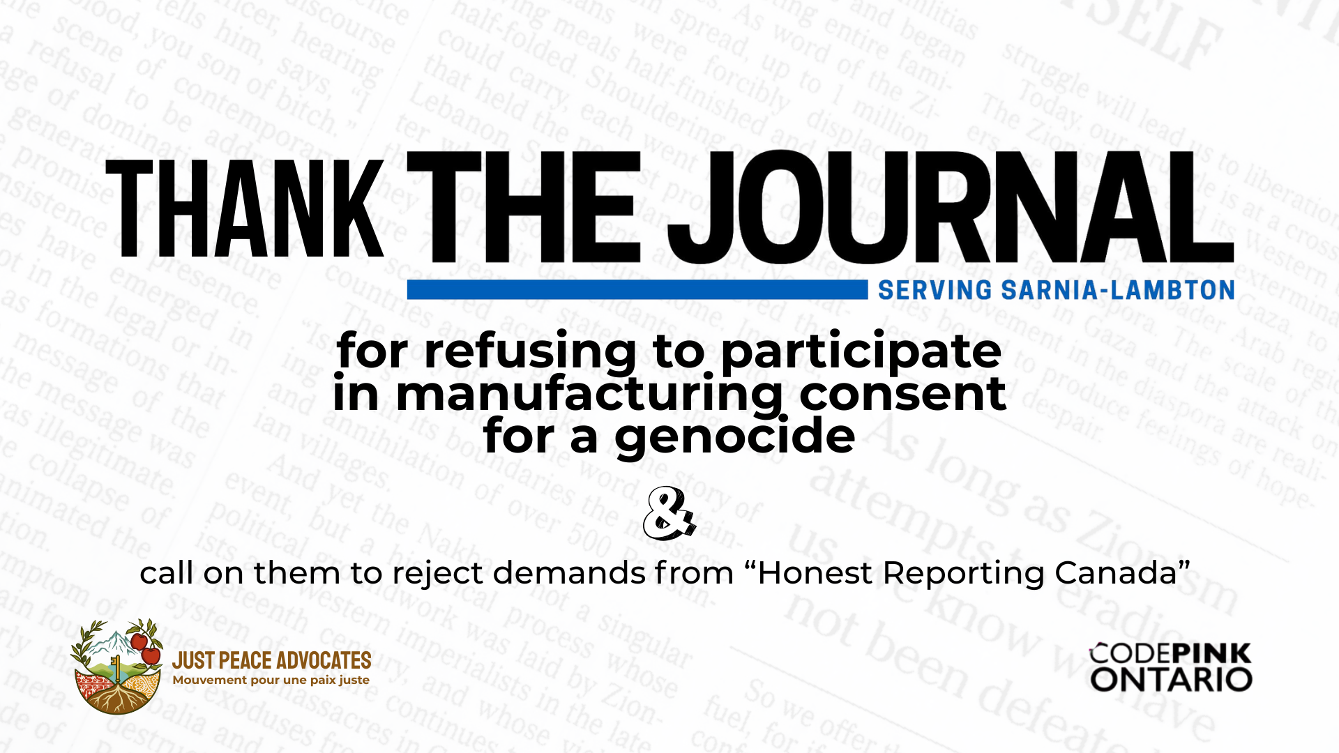 Thank the Sarnia Journal for Refusing to Participate in Manufacturing Consent for Genocide