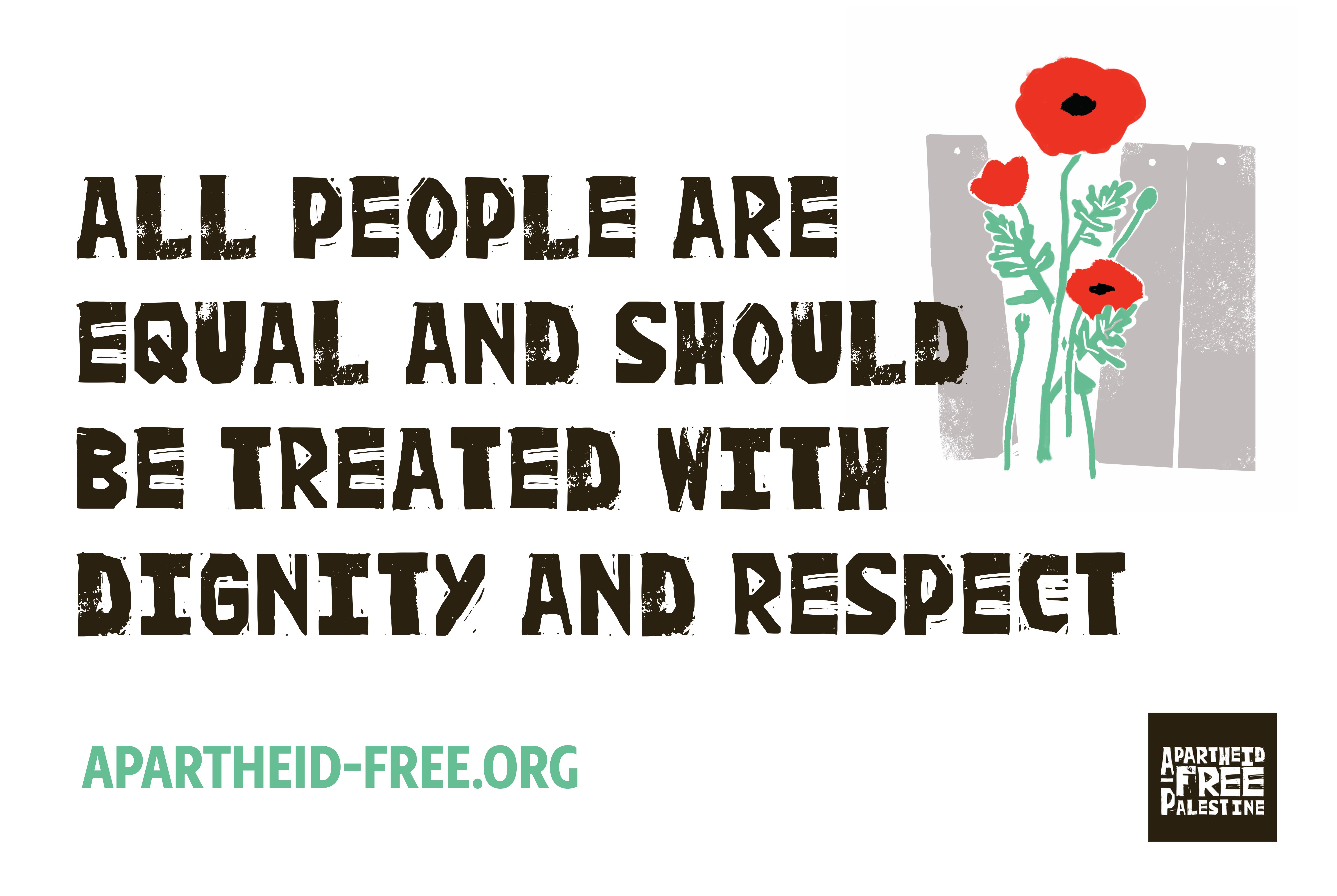 Let’s build an Apartheid-Free world, starting with our own community: our faith congregations, cities, campuses, and workplaces. We need to educate ourselves and others about racist laws and state systems at home and abroad, and we want to ensure that our communities do not contribute to the maintenance of Apartheid regimes. Together, we can work to promote freedom, justice, and equality for all.