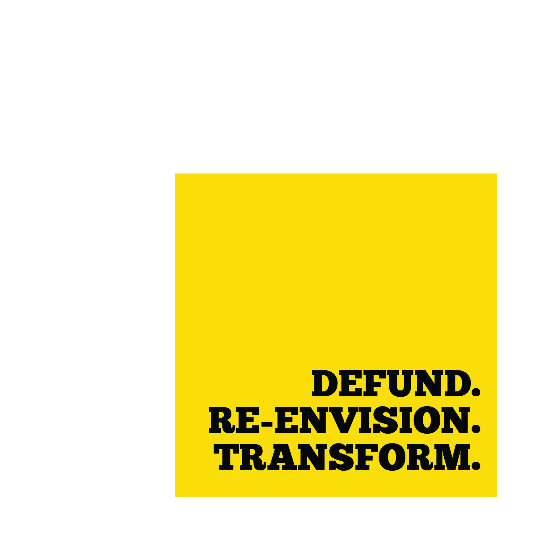 Defund. Re-envision. Transform is a grassroots campaign anchored by Arch City Defenders, Action St.Louis, CAPCR, and Forward through Ferguson which demands the defunding of SLMPD, re-envision public safety through reinvestment into the community resources that actually keep our communities safe, and the transformation of the St. Louis region.