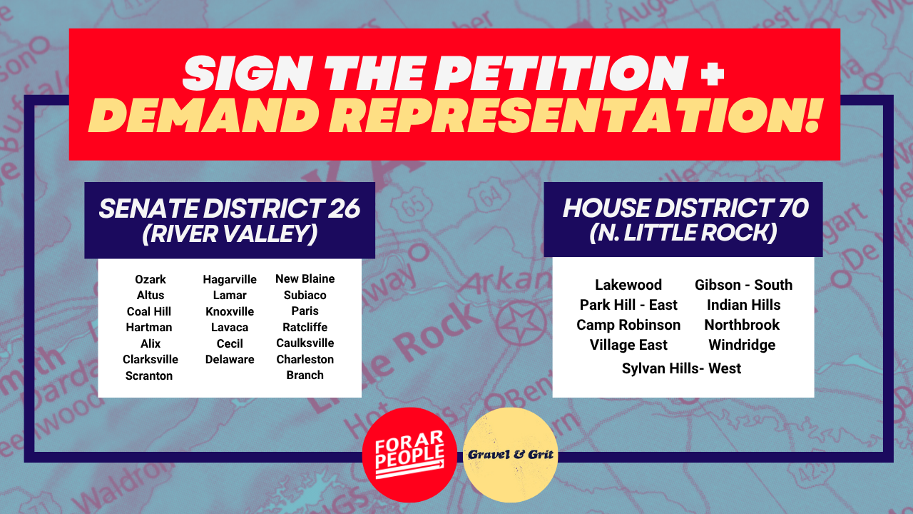 We are Arkansas residents concerned about the timeline of the special elections for Senate District 26 and House District 70. Previous special elections have been held within three months of a vacancy; this timeline denies our neighbors in the River Valley representation for over a year at a time when critical decisions about their district are being made.