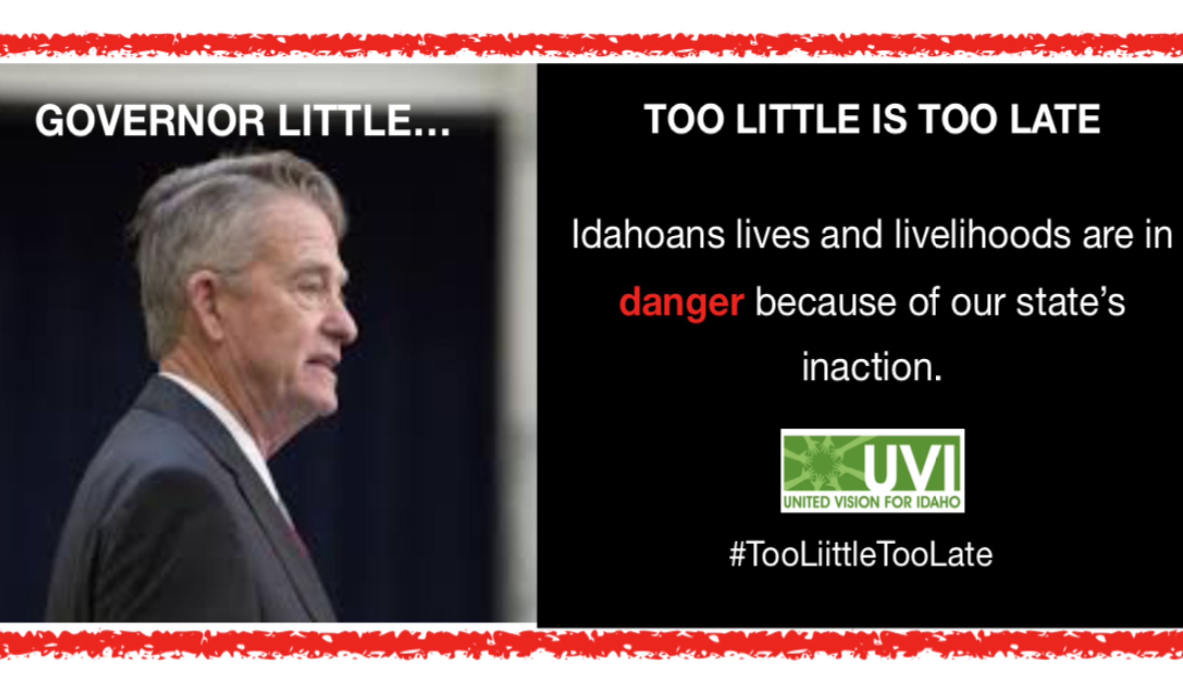 Idaho has available dollars if our priorities are in people. The Governor requested an increase that would increase the budget to $600 Million dollars. This is the time to use this money for vital services, pass a comprehensive budget, and enact a more equitable and fair revenue structure. The time is now to use this money to mitigate the harm facing Idahoans during this pandemic. We urge our Governor to act as soon as possible on the following demands in accordance with the values we have named above: