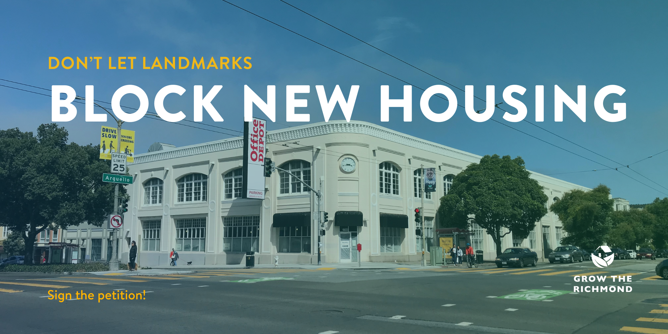 Grow the Richmond is arguing that 4 of the 9 properties (the Holy Virgin Cathedral at 6210 Geary, the Internet Archive at 300 Funston, Star of the Sea at 4410 Geary and the Jefferson Airplane House at 2400 Fulton) are appropriate for historical landmarking, but that the other 5 (which include the Office Depot at Geary and Arguello) should be removed from the list to minimize the processes needed to build new housing in our neighborhood. This petition will be delivered to SF Planning and Supervisor Chan's office.