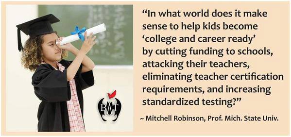 We respectfully demand that all expansion of charter schools stop until such time that we come together to address the shortfall of state aid to public education and find a mechanism to ensure that every student is given equal opportunity to succeed, regardless of zip code or type of school.