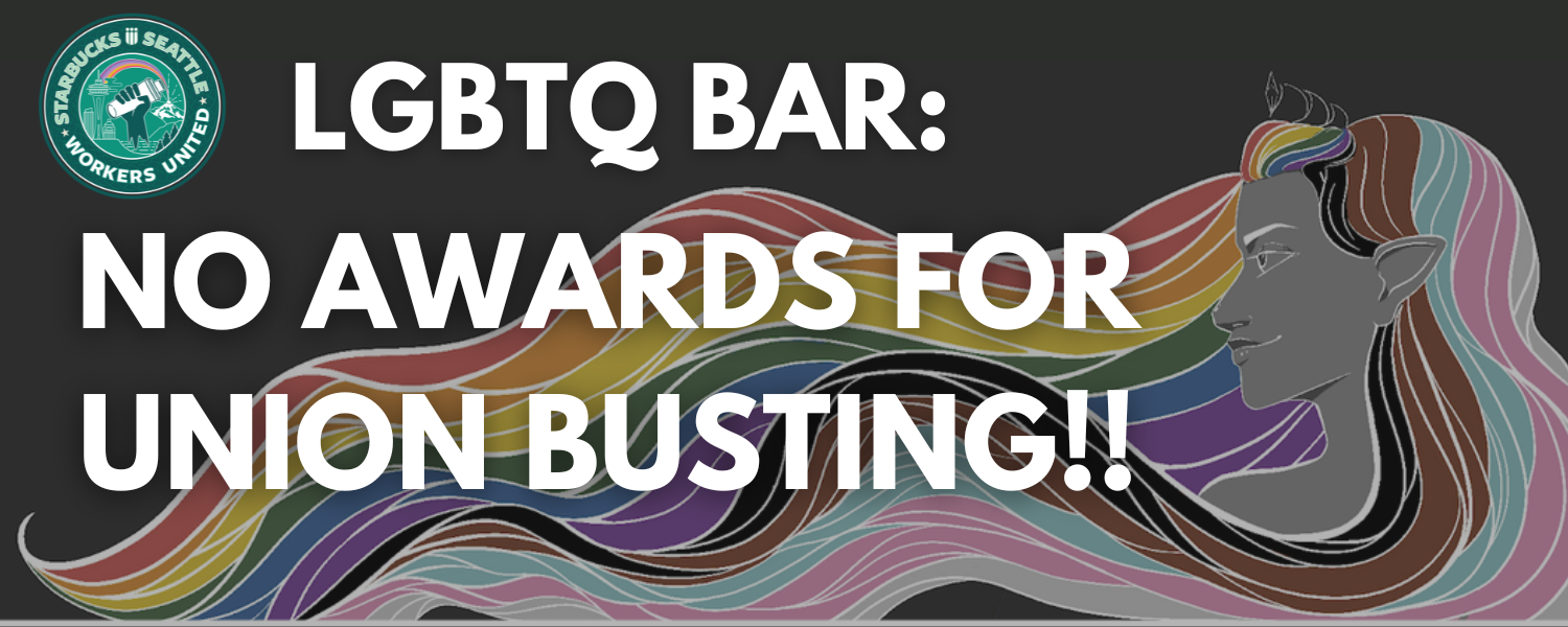 The national LGBTQ Bar Association is awarding a Starbucks Corporate Counsel, Cynthia Hill, with the Out and Proud award in Seattle on Tuesday, 10/3, which recognizes " legal professionals who advance LGBTQ+ equality through words and actions to create more secure and welcoming workplaces.” Starbucks is waging a well-documented, illegal scorched-earth anti-union campaign against union workers — now is NOT the time to pink-wash their record, and invalidate and silence the thousands of LGBTQ workers who are fighting for union rights on the job against Starbucks' illegal union busting.