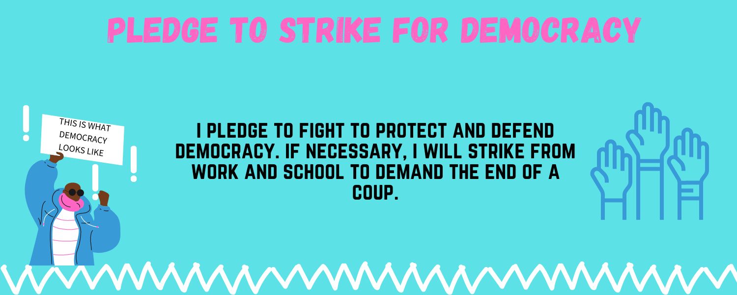 I pledge to protect democracy by striking from work and school if a coup is organized after the November 3rd, 2020 election.