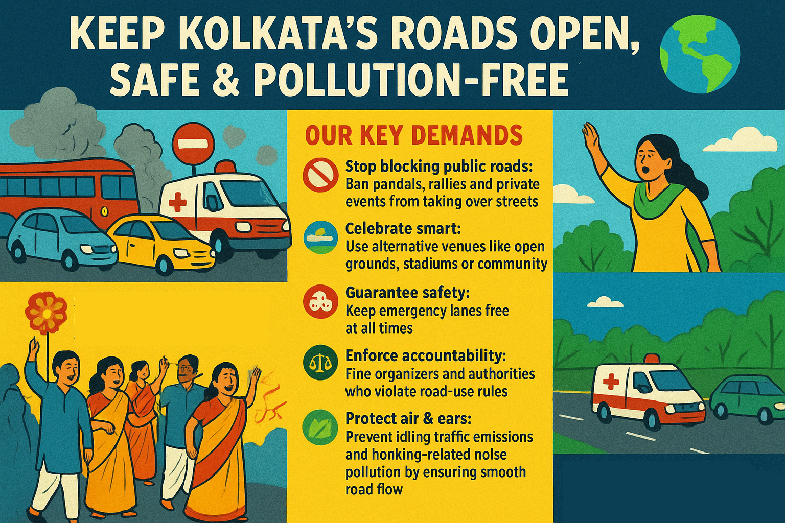 🚦 Keep Kolkata’s Roads Open, Safe & Pollution-Free 🌍