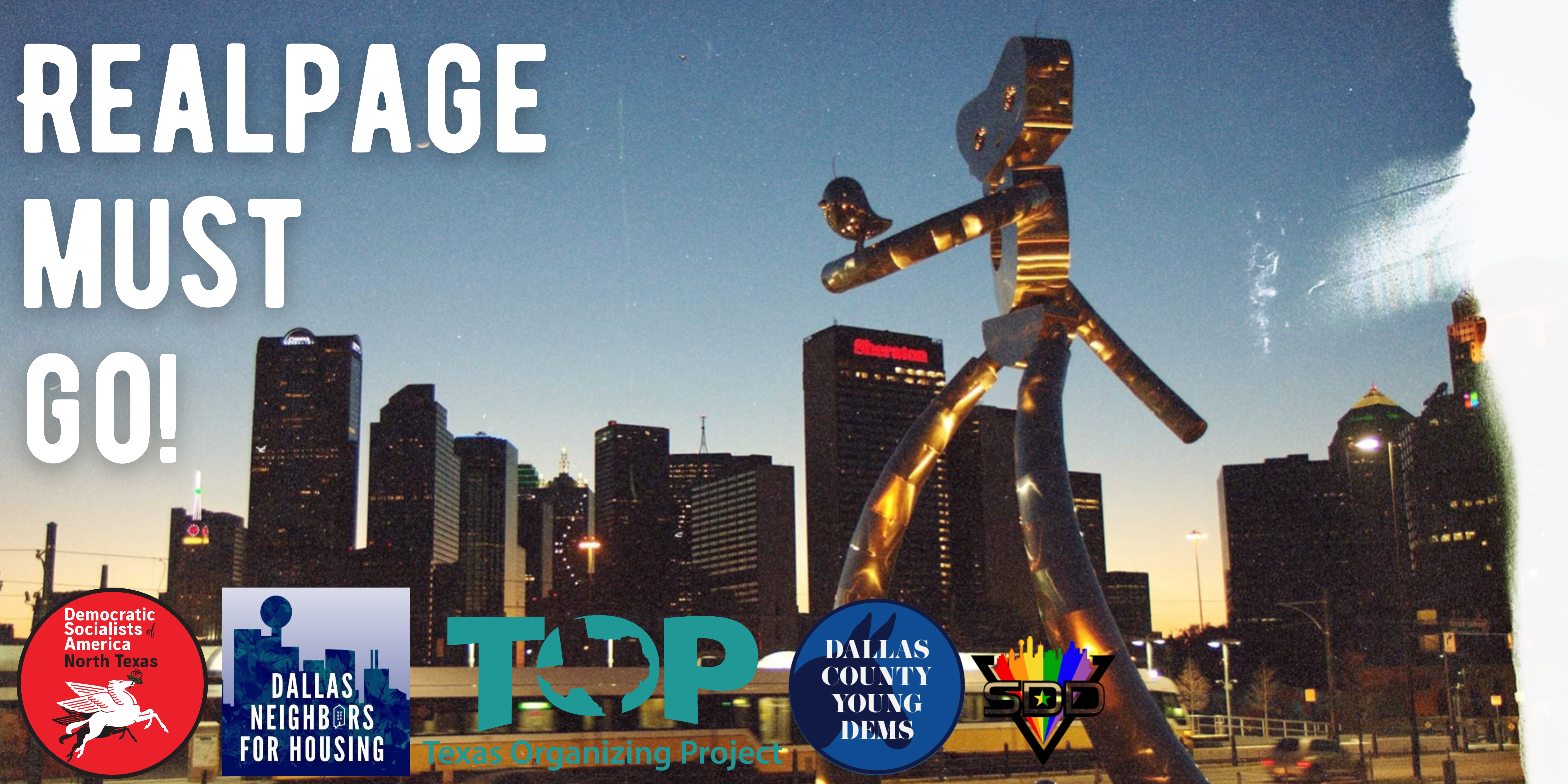 TOP, DSA North Texas y Dallas Neighbors for Housing (Vecinos de Dallas por la Vivienda) están recolectando firmas para pedir al Consejo Municipal de Dallas que prohíba RealPage, un software algorítmico que el 50% de los propietarios de Dallas utilizan para fijar los precios de renta. ¡Firma esta petición y dile al Consejo Municipal de Dallas que apoyas la prohibición para que podamos bajar nuestras rentas!