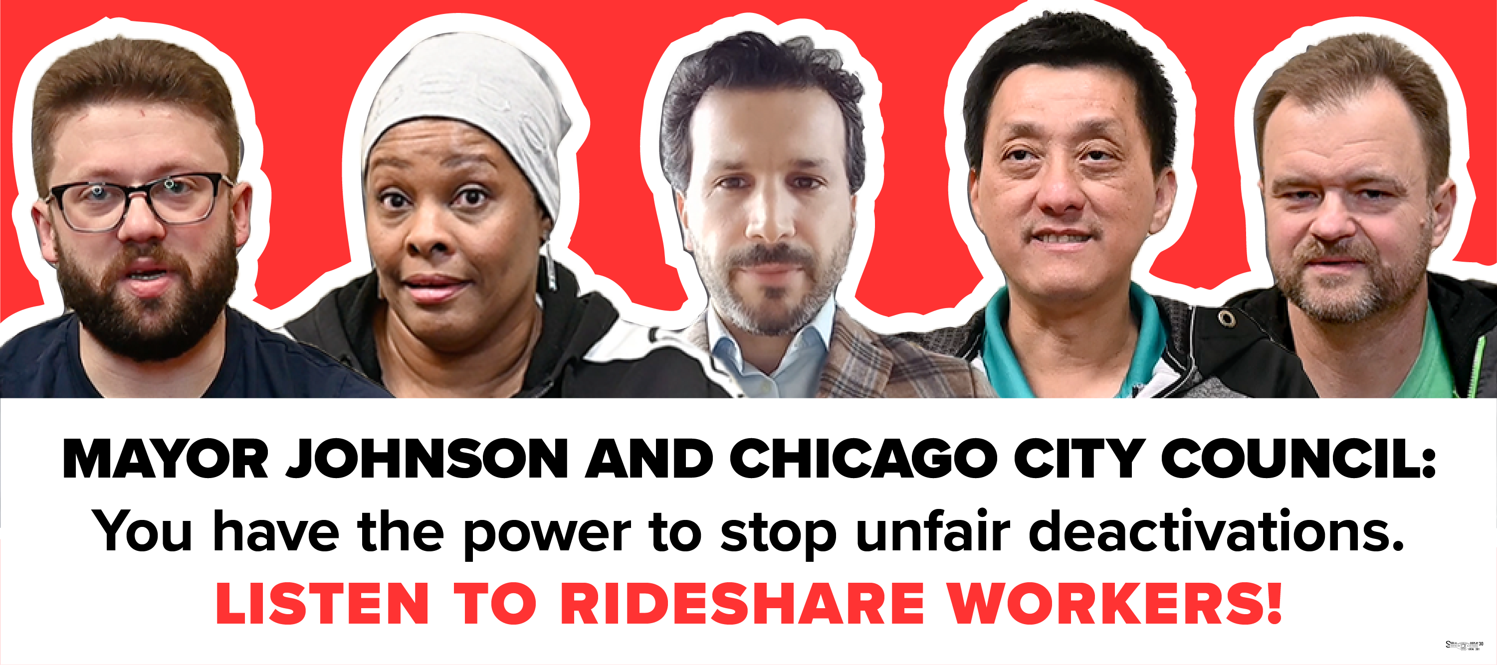 Every day, app drivers in Chicago are at risk of losing our incomes and careers. Just one false complaint by a passenger, and we can be locked out with the click of a button. The worst part is, we get banned from every single rideshare app at once and lose our incomes overnight, with no chance to appeal the decision. That’s why last January, we introduced an ordinance in the Chicago City Council to stop app companies from taking away drivers’ livelihoods without due process. This is the ONLY proven model that has worked for deactivation around the country. Any half-measures will continue this troubling issue for thousands of Illinois drivers. Now, we’re calling on Mayor Johnson to give workers the protections we need.