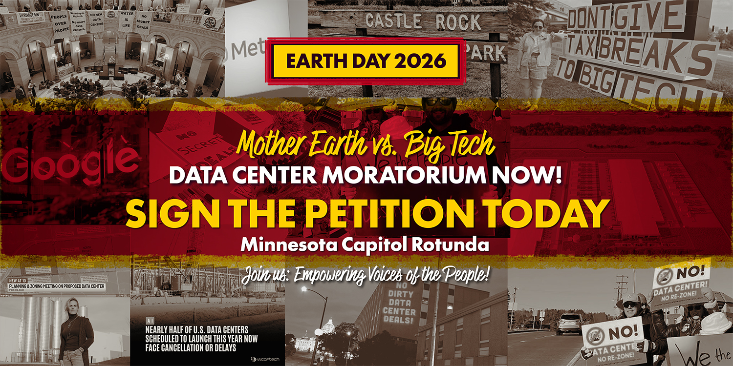 We demand an immediate moratorium on the approval, permitting, and construction of hyper-scale data centers at the federal, state, and local levels which would remain in effect unless and until comprehensive, enforceable regulatory frameworks are established to safeguard water, energy systems, environmental integrity, and the health and welfare of affected communities.