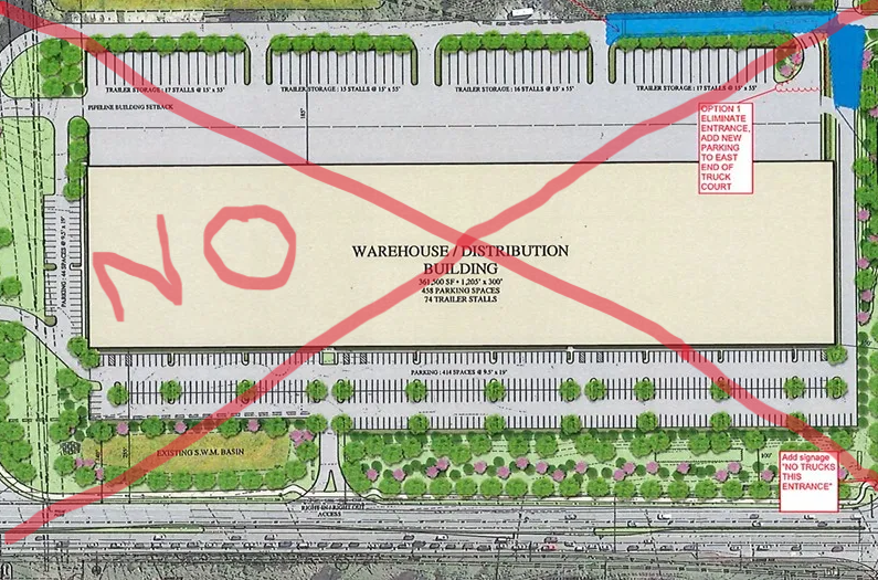 A distribution Center has been proposed in the middle of a residential area in Middletown Township. The proposal will add hundreds of tractor-trailers per day to our roads, impact air pollution which is already out-of-compliance with EPA guidelines, and add 15 acres of impermeable land which will threaten our wetlands.