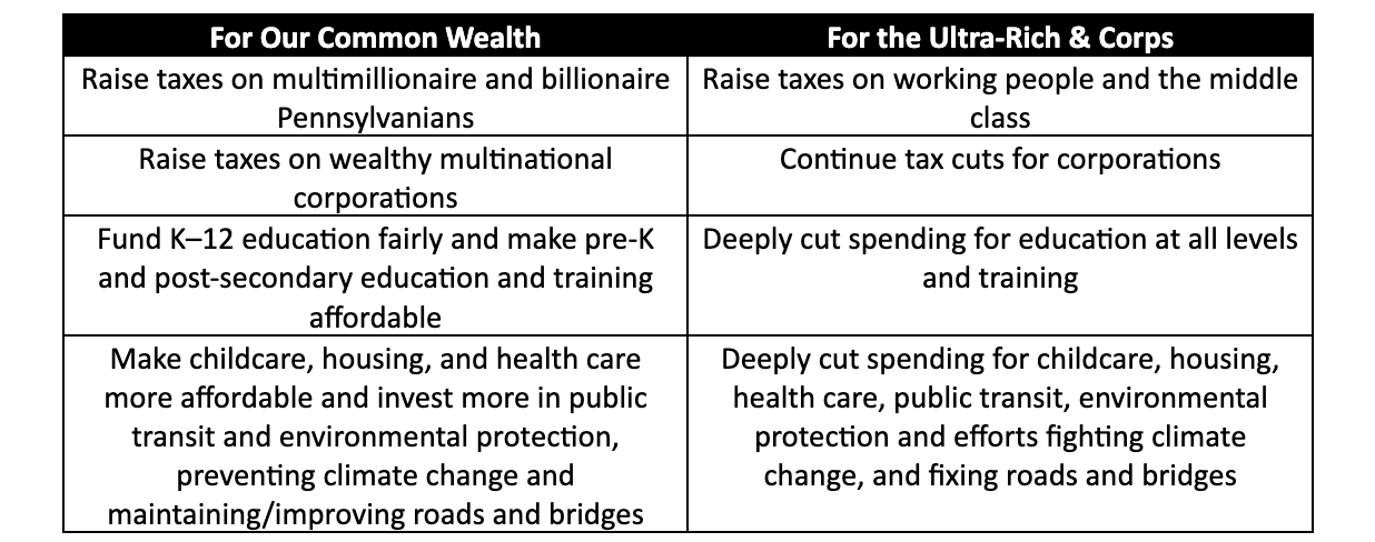 The path forward is clear: Raise the revenue we need from multinational corporations and billionaires. Invest in people and build a Pennsylvania where everyone—not just the wealthy few—can succeed.