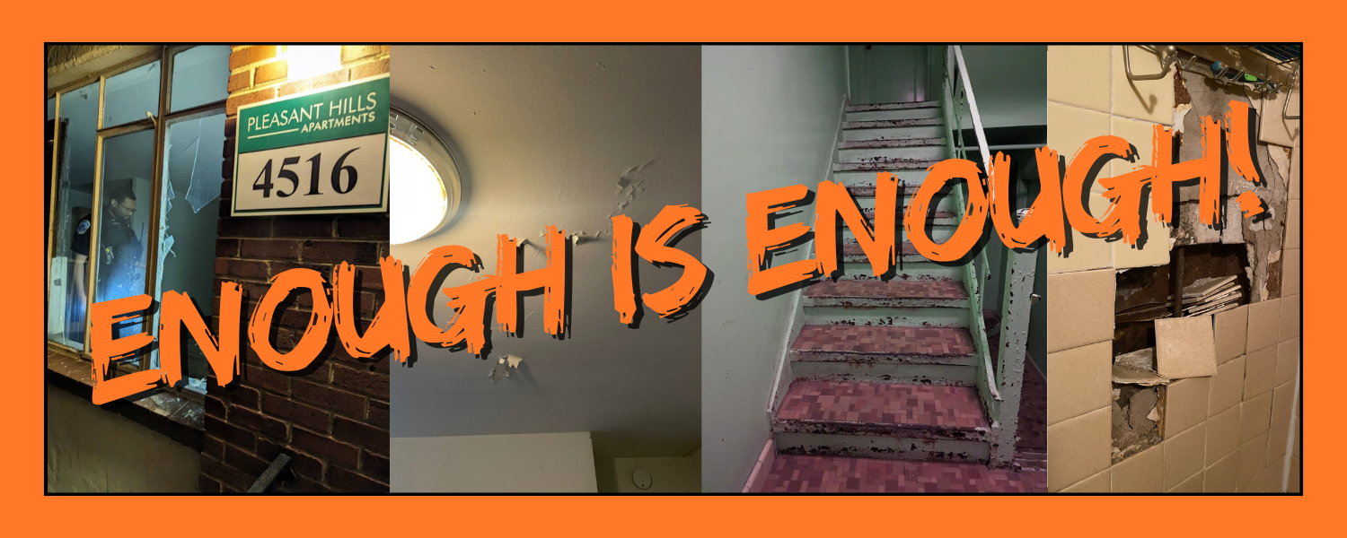 Tenants at Pleasant Hills Apartments are deeply frustrated over the unacceptable conditions of our homes. The persistent neglect of our buildings' maintenance has left us living in deplorable conditions that compromise our health, safety, and quality of life.
