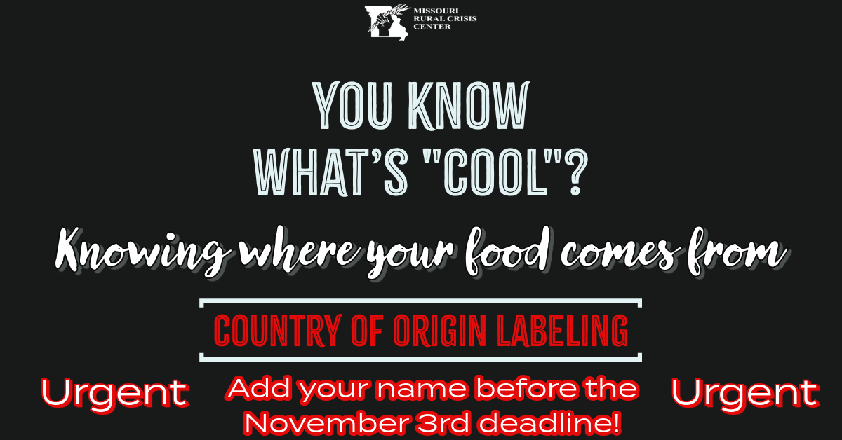 Consumers and producers overwhelmingly favor Country of Origin Labeling for Meat. US consumers get to know where nearly every other product they use comes from, and they deserve to know about the meat they eat as well. Country of Origin Labeling (COOL) was the law of the land before Congress caved to pressure from global meatpackers and a lawsuit by Canada and Mexico. The review of the USMCA is a great opportunity to restore this important labeling and protect US farmers, ranchers, and consumers from unfair trade practices that only benefit multinational corporations.