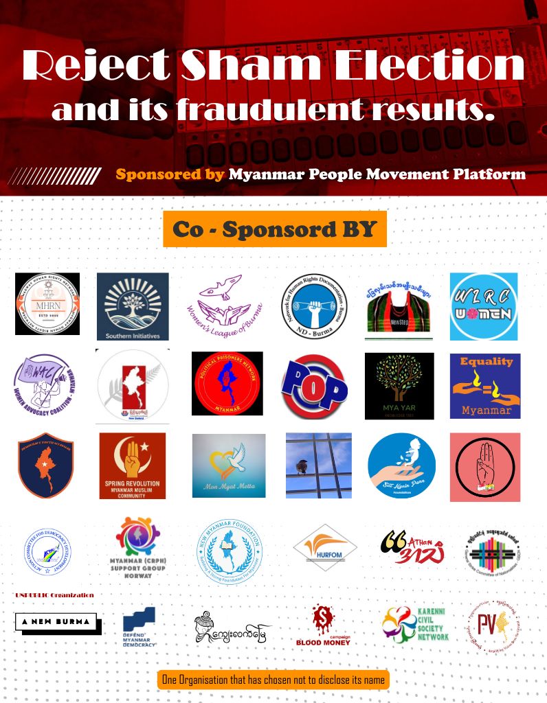 We, the undersigned, strongly oppose and reject the upcoming sham election by the genocidal Myanmar junta.