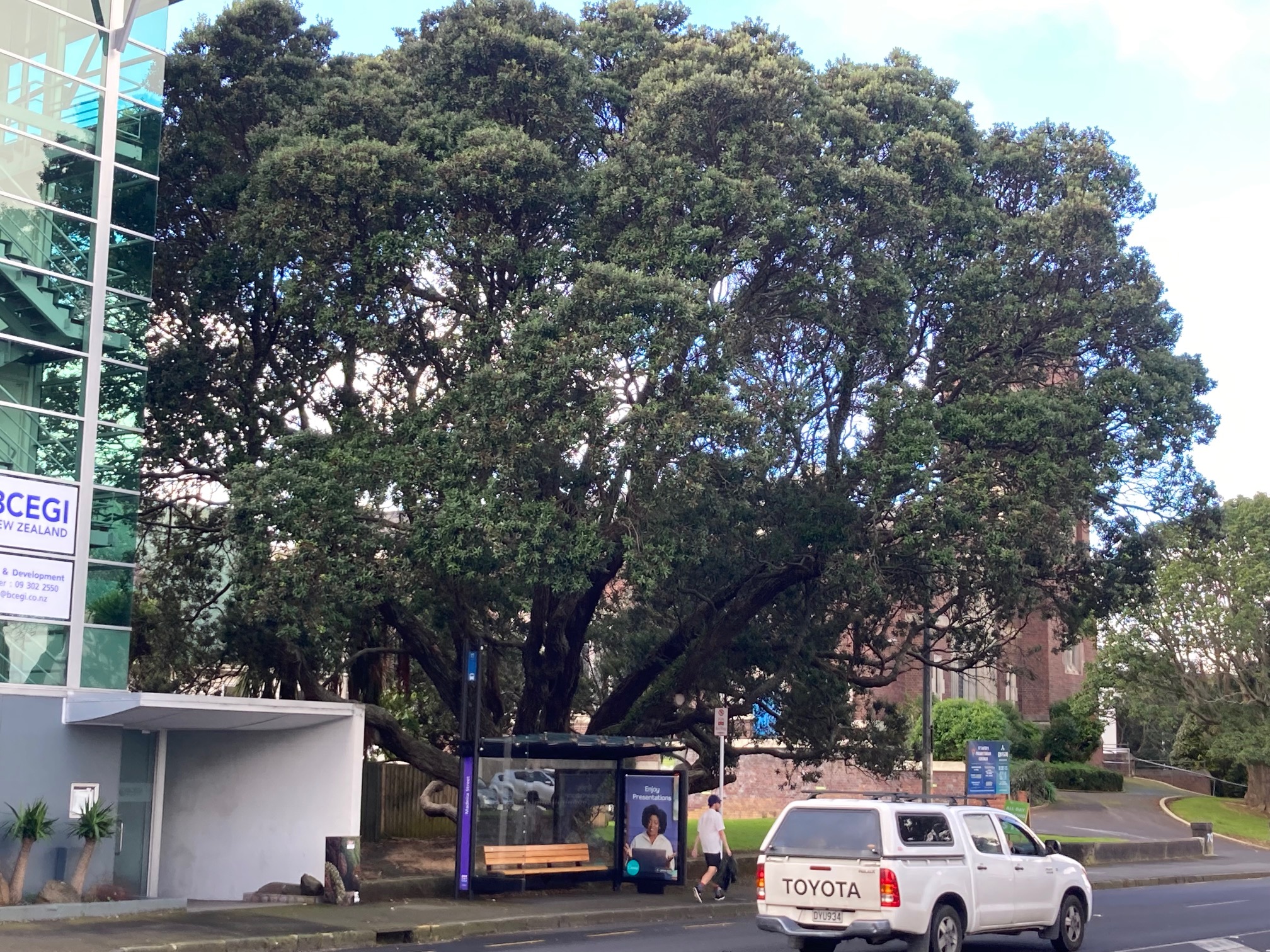An iconic 120 year old Pohutukawa tree is under threat of being felled for development. The tree is part of the Khyber Pass streetscape, in a historic precinct that includes St. David’s Presbyterian Church at the intersection of Khyber Pass and Madeira Place. The property at 70 Khyber Pass Road has recently been sold by the Presbyterian Church, and is under contract to Mansons TCLM.