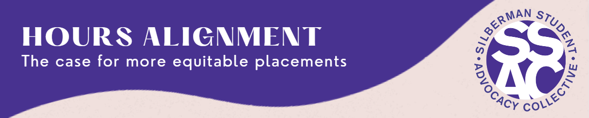 We are writing this letter to urge you to support Hours Alignment. We recognize the immediate need for Silberman students to be supported by Silberman to show that the institution cares for and listens to its students: Hours Alignment is one way to relieve the undue burden for students. We demand that Silberman adjust the total required unpaid practicum hours for full-time, advanced standing, and accelerated program students from the current 1200, to align with the standard of 900 hours set by CSWE and NYSED (for graduate accreditation and licensing, respectively).