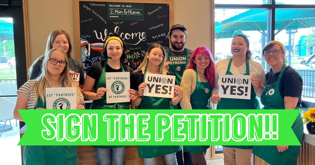 So sign up and join the struggle! These workers will need all the help they can get! The union busting that organizing workers are subjected to is one the major issues at the root of the massive problems our society faces. Starbucks is facing 200 unfair labor practice violations because of their union busting. They have criminally fired organizers, forced them into captive audience meetings, attempted to close stores, cut hours, and even threatened access to gender affirming care for union workers. Carbondale will not accept mistreatment of organizers trying to secure their basic rights. Workers rights are human rights! Sign now! We will keep you posted on ways to support the workers as solidarity events pop up! Unions built Southern Illinois let help build unions! Thanks and solidarity!