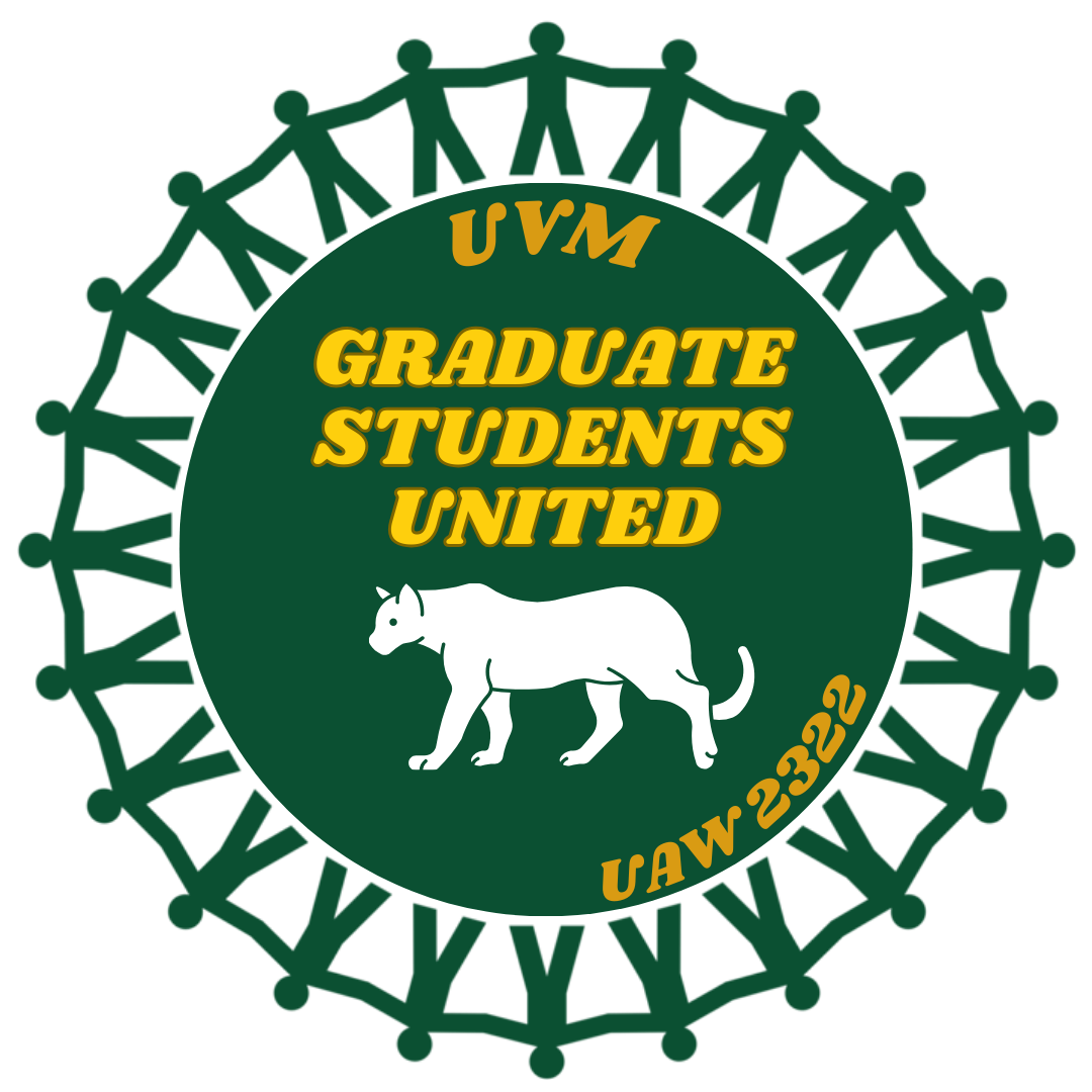 The graduate student workers at the University of Vermont are forming a union, UVM Graduate Students United (GSU). We are represented by the United Automobile, Aerospace, and Agricultural Implement Workers of America (UAW Local 2322). This semester, a majority of graduate workers at UVM have shown written support for GSU through union authorization cards. We are asking, as part of the UVM community, that you accept the bargaining unit we propose, which includes every funded graduate worker at UVM, and that you remain neutral while we conduct a democratic election.