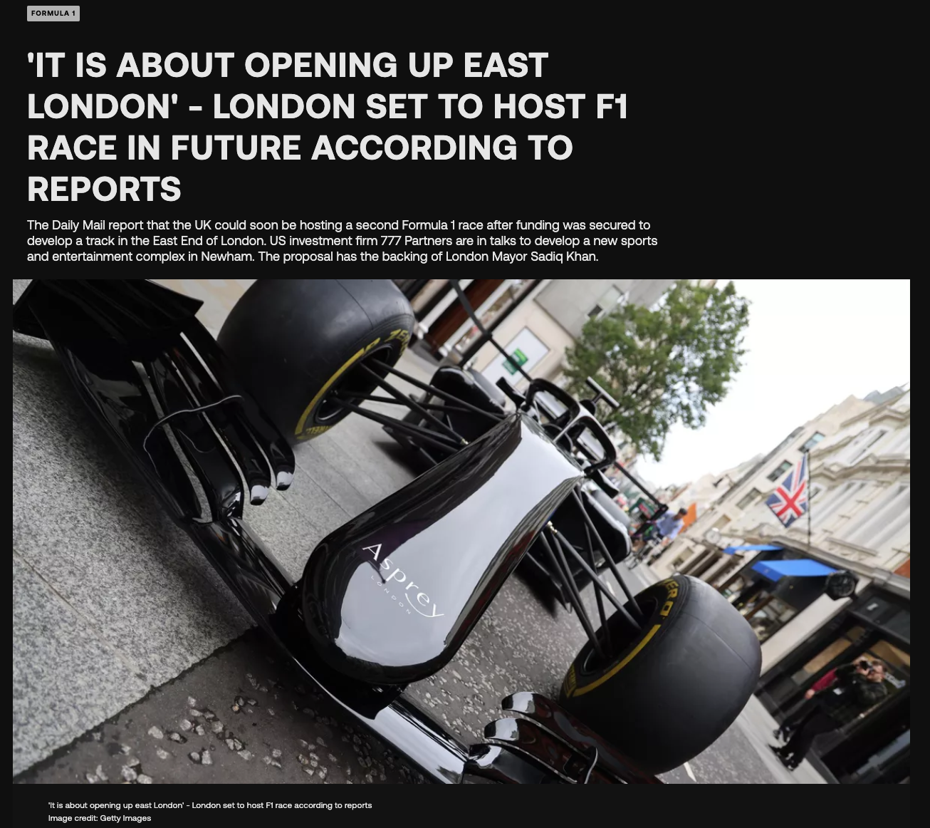 Newspapers have recently announced that "Britain looks set to host two Formula 1 races per year after plans for the capital to host a Grand Prix were revealed. London's East End is said to host the proposed new F1 venue, with plans in place to develop a new sports and entertainment complex at the Royal Docks."