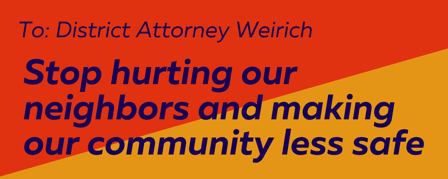 District Attorney Weirich, make these changes, to keep our communities safe and healthy, now.