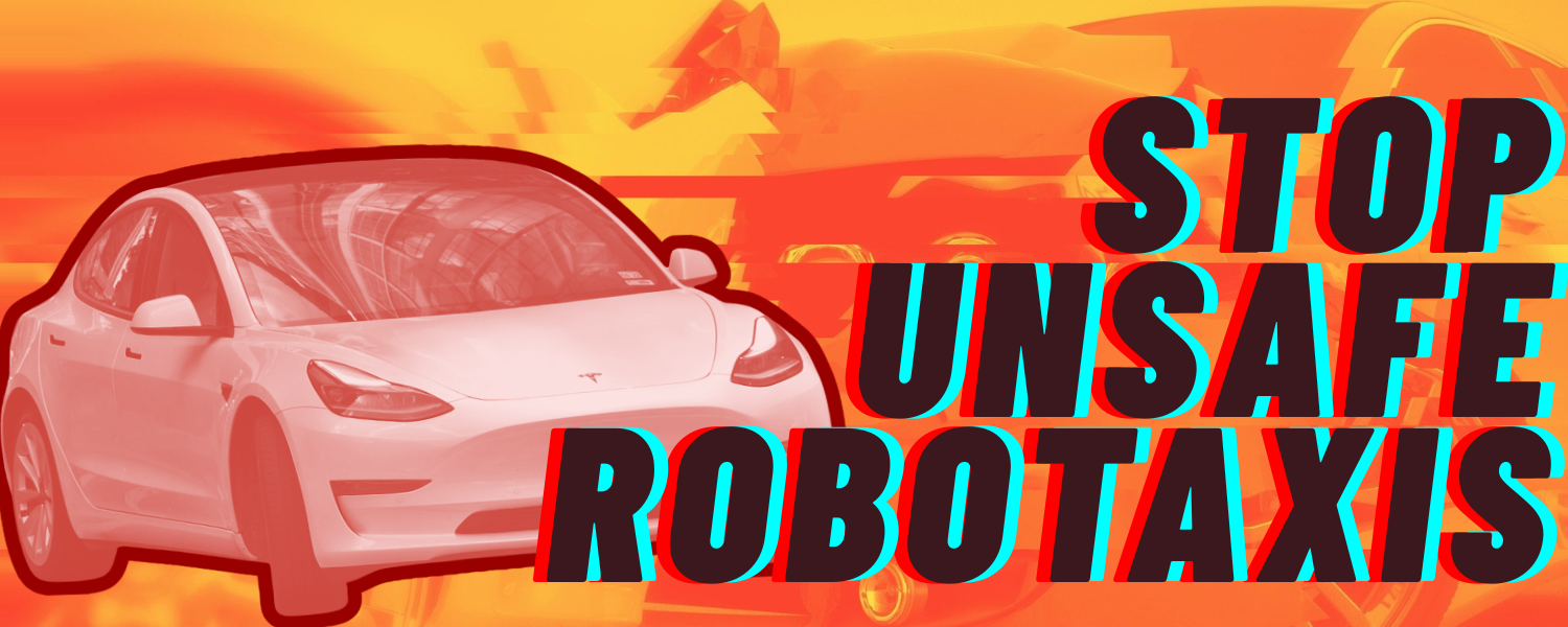 We demand an immediate halt to the deployment of Tesla’s Robotaxis and other unsafe FSD vehicles that lack the safety features and rigorous test protocols of other autonomous vehicles.