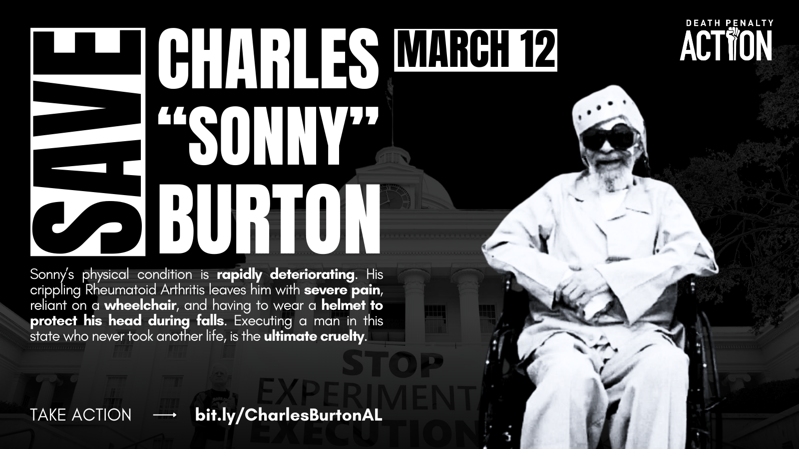 Charles "Sonny" Burton faces an execution on March 12, 2026 in Alabama even though he did not kill anyone, and the State does not dispute that fact.