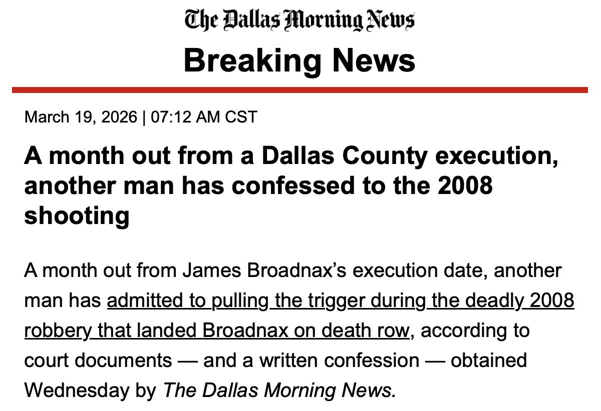 This is not just about James Broadnax. It is about whether science matters more than coerced or impaired confessions; DNA evidence can be ignored when it contradicts a conviction; The state can take a life despite significant reasonable doubt and unfairness in the prosecution. Once an execution is carried out, there is no appeal, no correction, and no justice left to give.