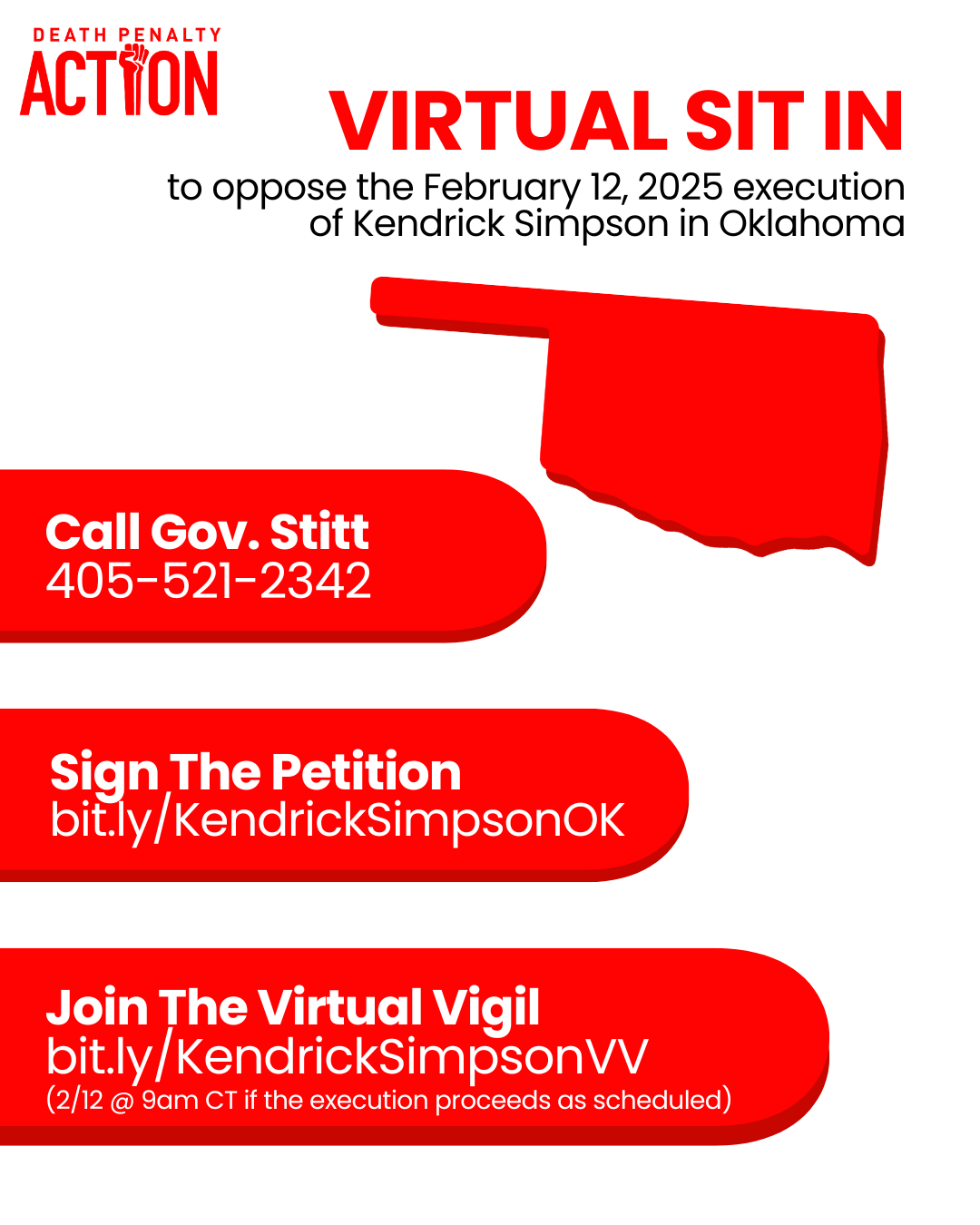 We are writing to you regarding Kendrick Simpson, who is scheduled for execution in Oklahoma on February 12, 2026 for the 2006 murders of Glen Palmer and Anthony Jones.