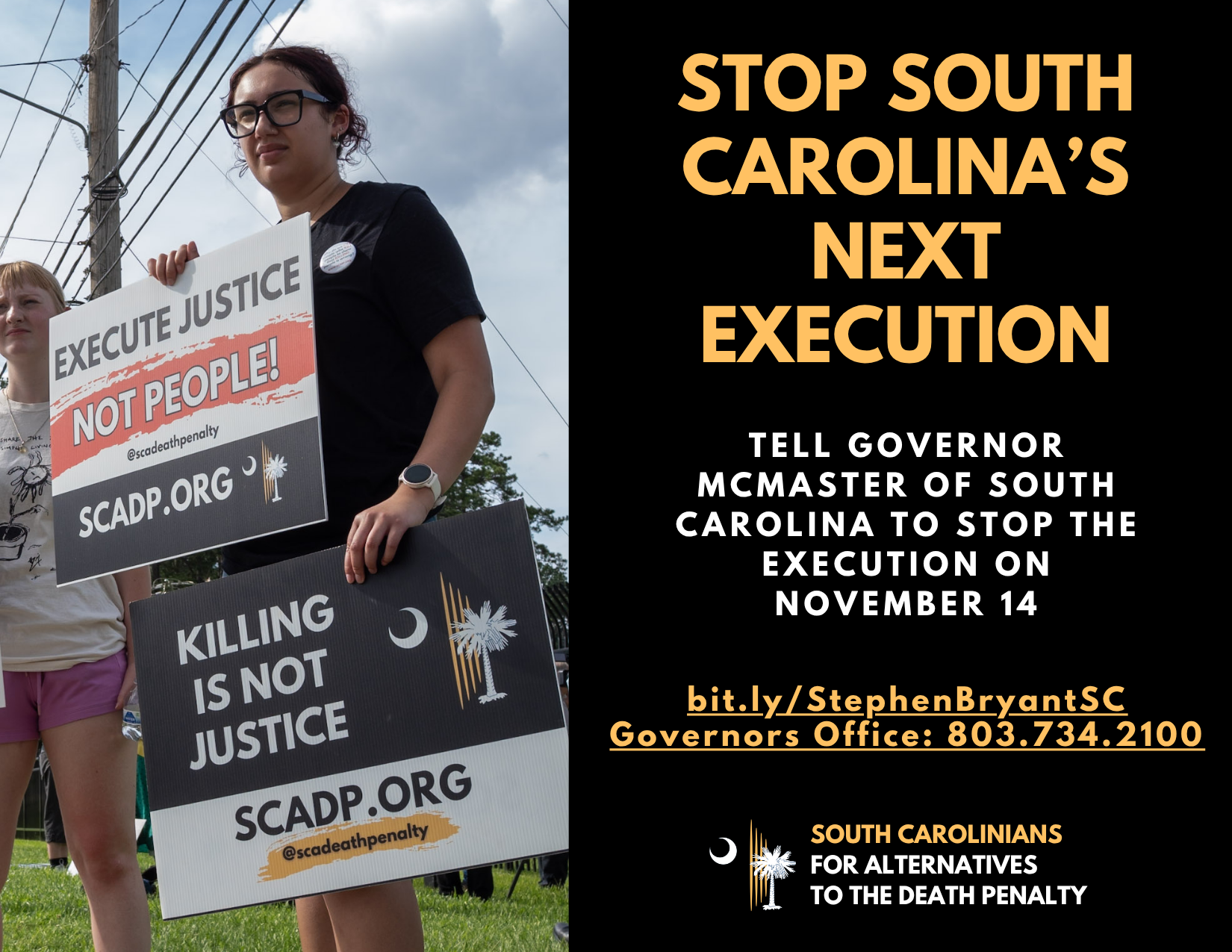 Please sign the petition asking Governor Henry McMaster to stop this execution and commute the sentences of South Carolina’s death row prisoners. Any alternative is better than the death penalty!