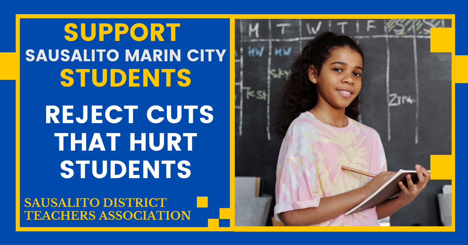 Please sign this petition to let the Sausalito Marin City School Board and Superintendent Itoco Garcia know that you want them to only make cuts away from our students and you want them to reject calls to fire classroom educators so that our students and families can thrive. We also encourage you to attend the School Board meeting on March 10 and to speak up against cuts that hurt students.