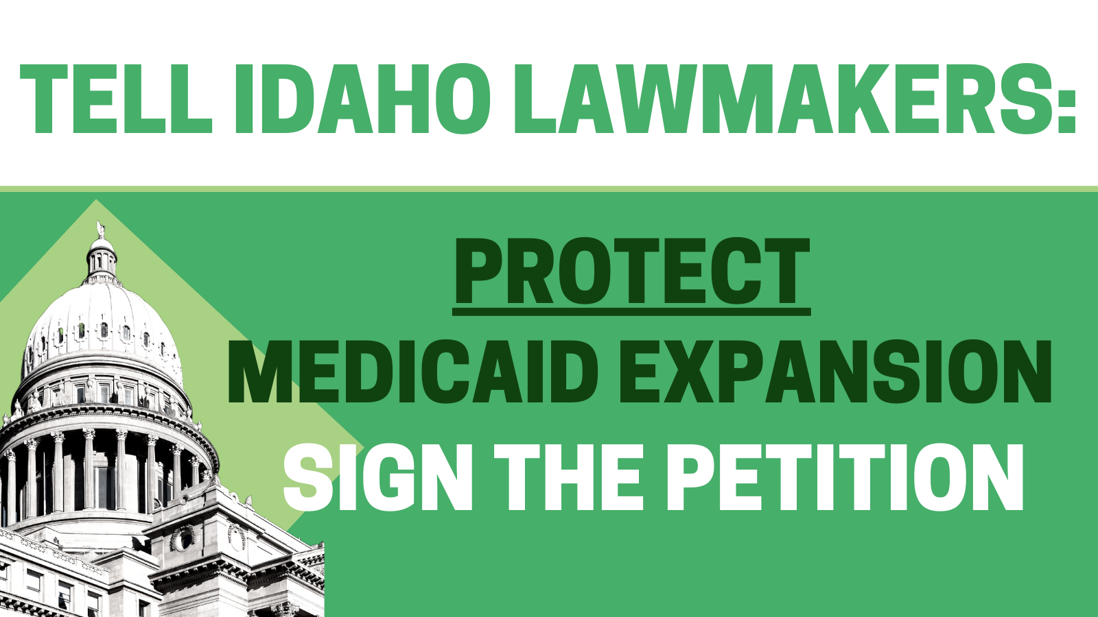 As special-interest groups work hard to repeal Medicaid Expansion, it's critical that elected officials hear from the people of Idaho. Will you sign the petition and ask Idaho lawmakers to protect Medicaid Expansion?