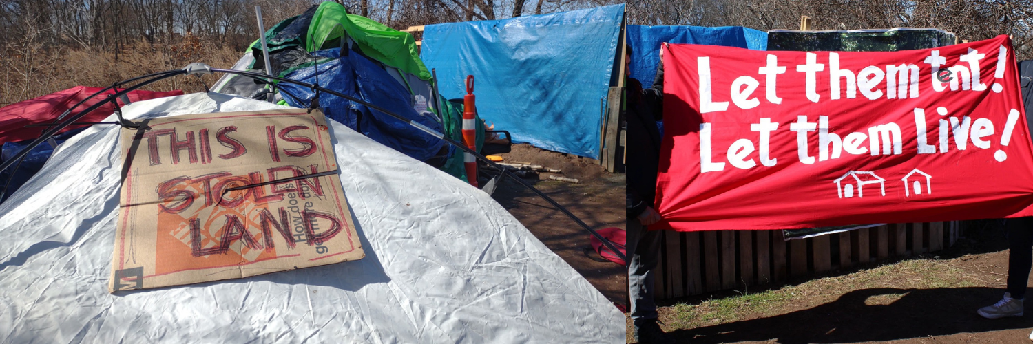 Three years ago during the COVID-19 pandemic, folks who were unhoused took refuge and established a community of encampments in the West River public park. Community groups helped them make a dignified home with hand-washing stations, generators, and wooden structures to stay dry, warm, and safe. The camp grew at one point to forty people.