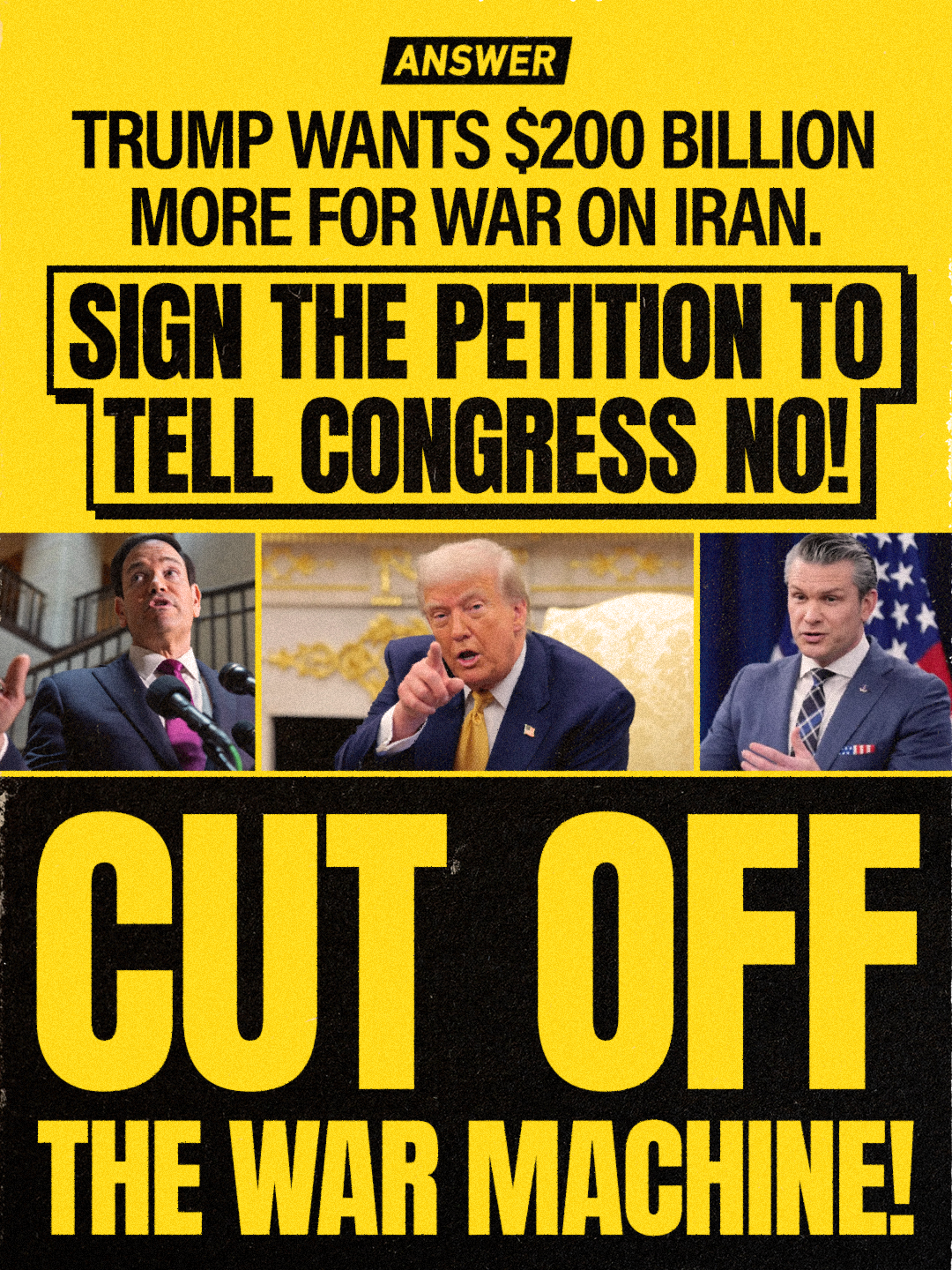 Trump Wants $200 billion more for war on Iran. Tell Congress NO!