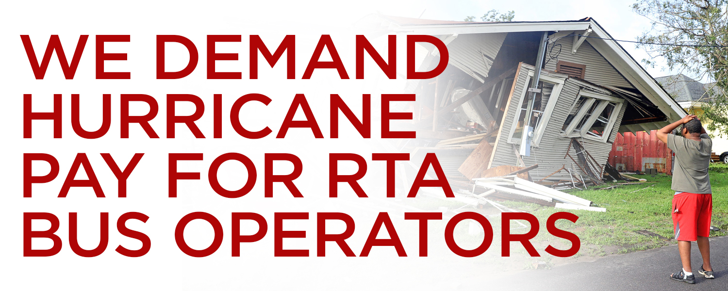 We cannot let this stand. You can help us by demanding hurricane pay for RTA operators, who helped transport people during Hurricane Ida, the reinstatement of Local President Valerie Jefferson and the resignation of RTA CEO Alex Wiggins for his history of abusive and retaliatory behavior. Please fill in the information asked to sign our online petition.