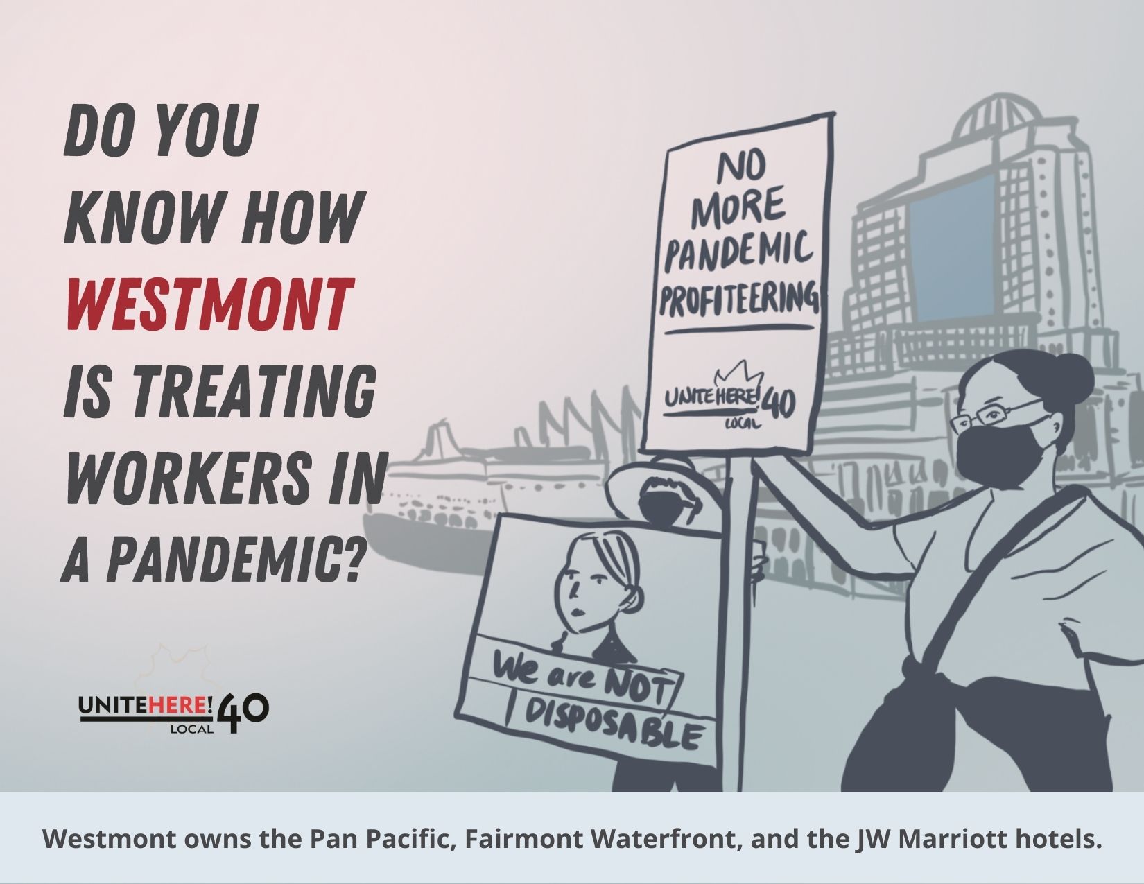 During the COVID-19 pandemic, Westmont Hospitality Group terminated nearly 100 workers at Pan Pacific Vancouver. They also terminated workers at the Fairmont Waterfront and JW Marriott in downtown Vancouver. They did all this while taking up to $48 million in public Covid relief across North America.