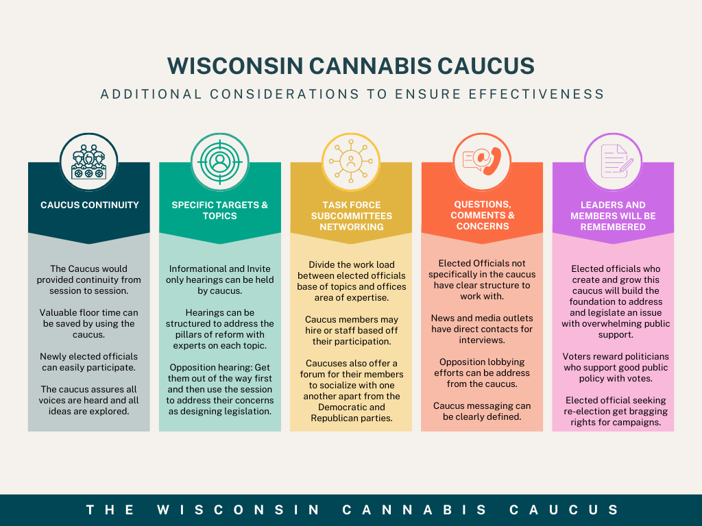 Despite these obstacles, there remains a clear path forward for legislators who genuinely care about cannabis reform. To break through the gridlock and foster bipartisan cooperation, it is essential to establish a Wisconsin Cannabis Caucus. This dedicated, cross-party group could serve as a platform for lawmakers committed to crafting and advancing policies that reflect the realities and opportunities of cannabis regulation. By forming such a caucus, pro-reform legislators can work together to ensure that cannabis policy becomes a priority in 2025 and beyond, transcending partisan politics and addressing the issue in a way that benefits all Wisconsinites.