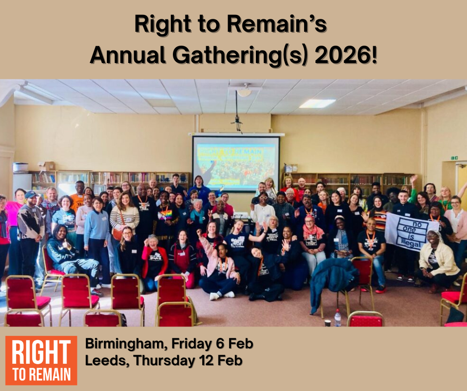Register for Right to Remain's Annual Gathering in Leeds on 12 Feb.