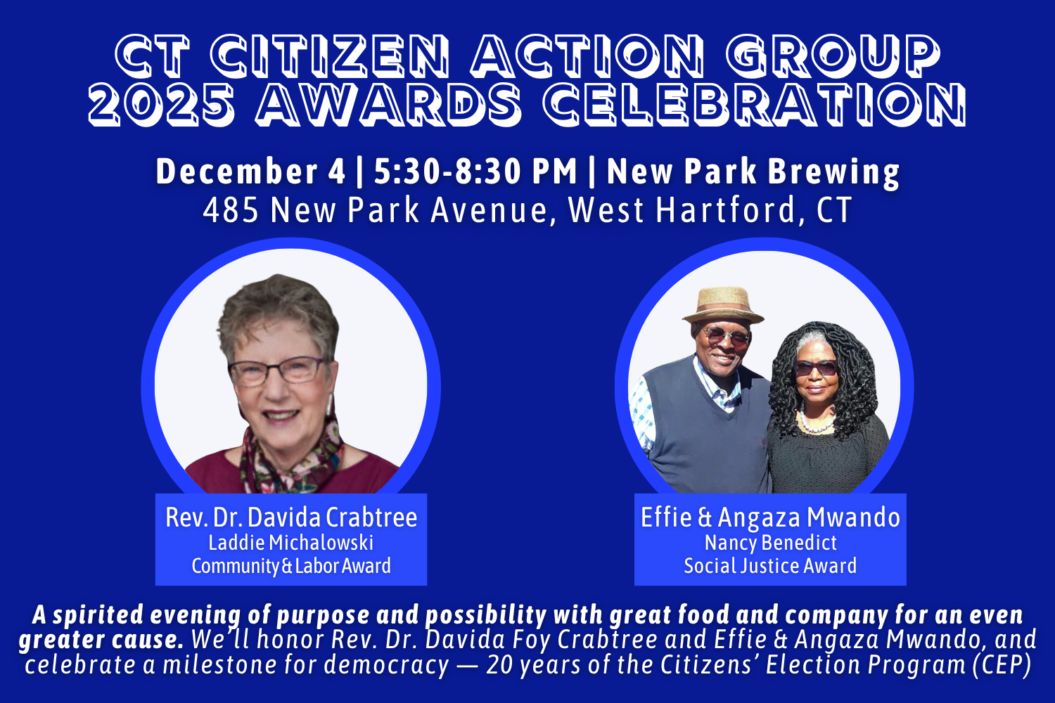 During the program, we will also celebrate a milestone for democracy in Connecticut 20 years of the Citizens’ Election Program (CEP).