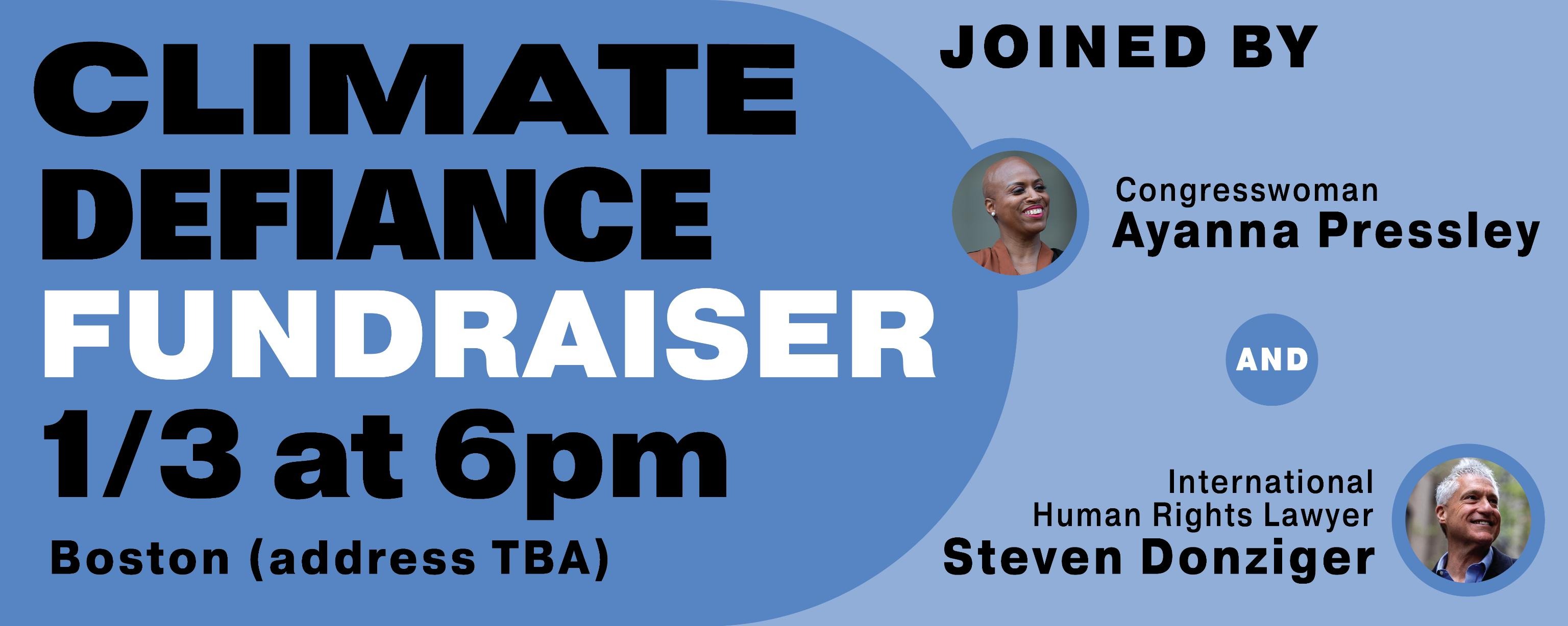 Climate Defiance benefit with Rep Ayanna Pressley, Steven Donziger, and Cambridge City Councilor Sumbul Siddiqui