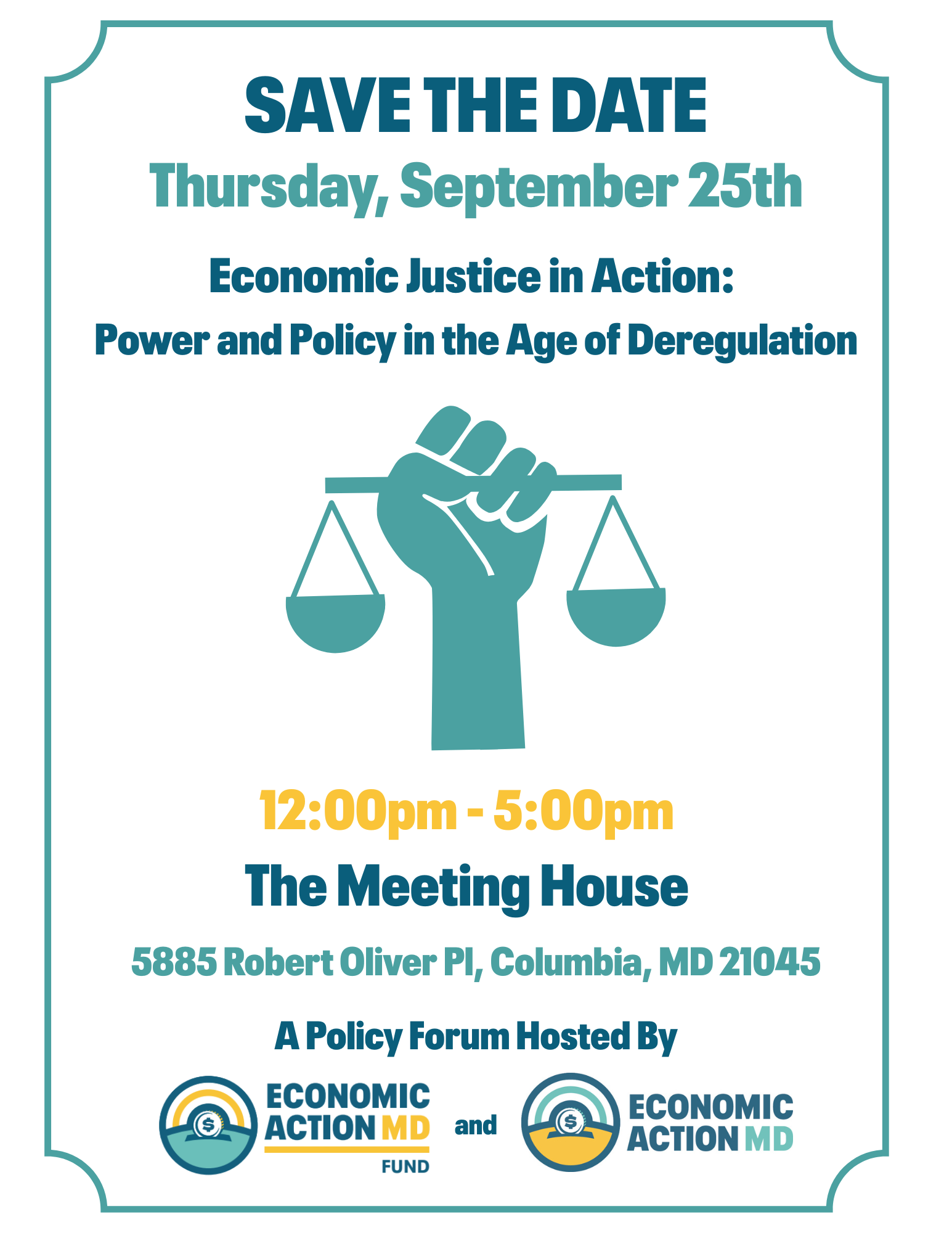 This policy forum also serves as the annual fundraiser for Economic Action Maryland and Economic Action Maryland Fund. At this time when economic justice is under attack at the federal level your support of a people-powered movement for is more important than ever. Thank you!
