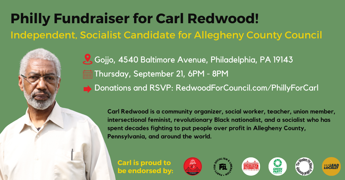 Philly Fundraiser for Carl Redwood, Independent & Socialist for Allegheny County Council